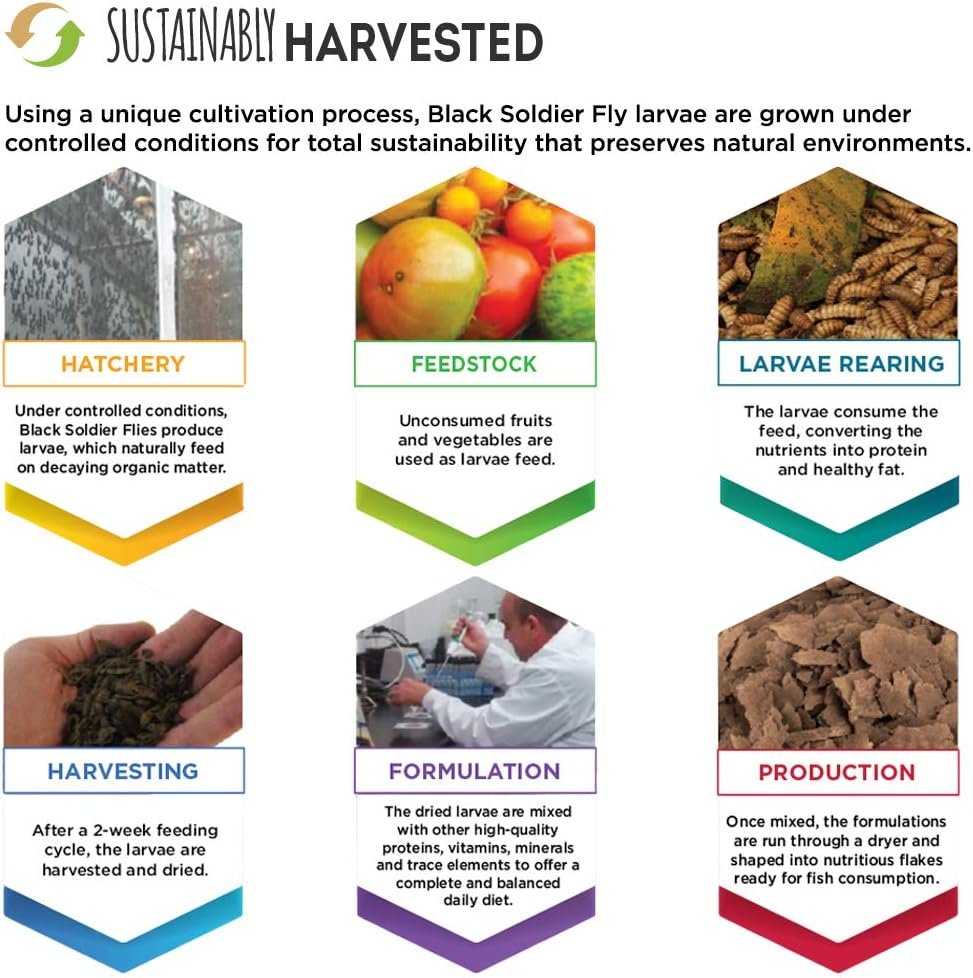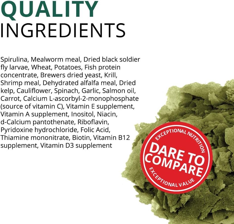 Enthält Krill- und Garnelenmehl für Omega-3- und 6-Fettsäuren und fördert gesunde Flossen, Haut und lebendige Schuppen bei tropischen Fischen.