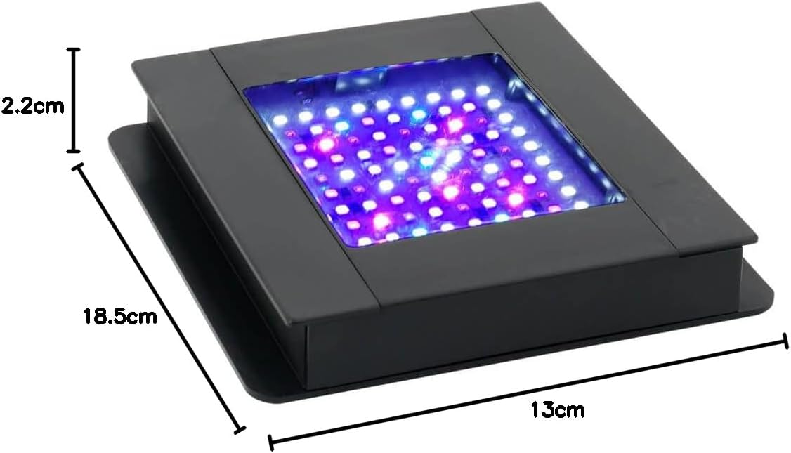 Programmierbarer schrittweiser 24-Stunden-Beleuchtungszyklus (Sonnenaufgang, Tageslicht, Sonnenuntergang und Nacht) 7 einzigartige Wellenbereiche für ein vollständiges Spektrum und individuell steuerbare Farben. Optional voreingestellte Habitat-Lichtkonfigurationen (sonniges Riff, Tiefseebeleuchtung, Farbenexplosion). Einstellbare Position (oben/unten, rechts/links, vorne/hinten). Die Aluminiumschale sorgt für eine effektive Wärmeübertragung und einen besseren Schutz gegen das Eindringen von Wasser und Feuchtigkeit, und der Aluminiumrahmen ist 23 % leichter und flacher als frühere Generationen. Wasserdichter Schutz nach IP67 – die Beleuchtungseinheit kann direkt über der Wasseroberfläche montiert werden und das Licht dringt intensiver und effizienter ein. ins Wasser gehen. Größere Abdeckung – jede einzelne LED strahlt Licht über 120° ab und sorgt so für eine breite und gleichmäßige Beleuchtung ohne tote Stellen