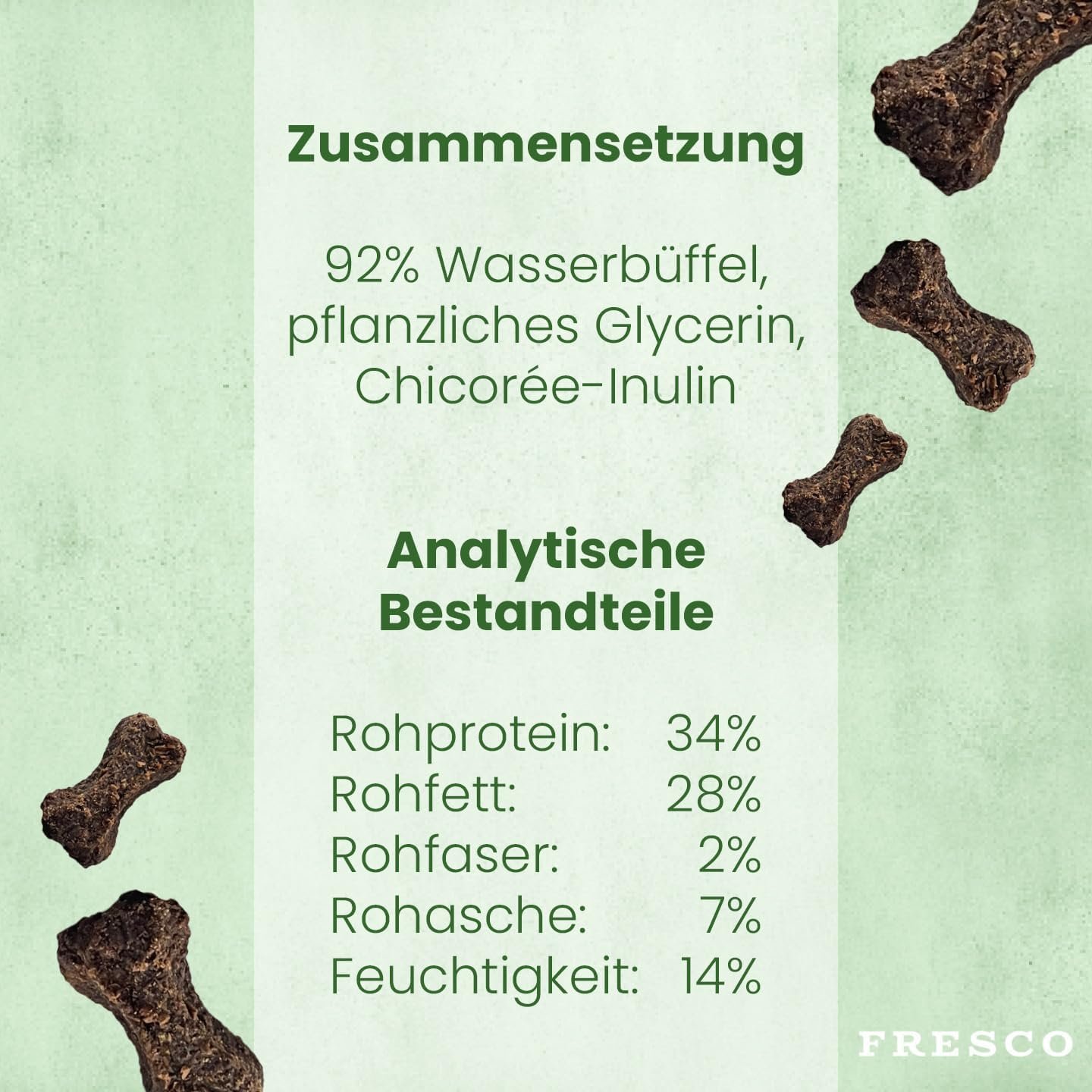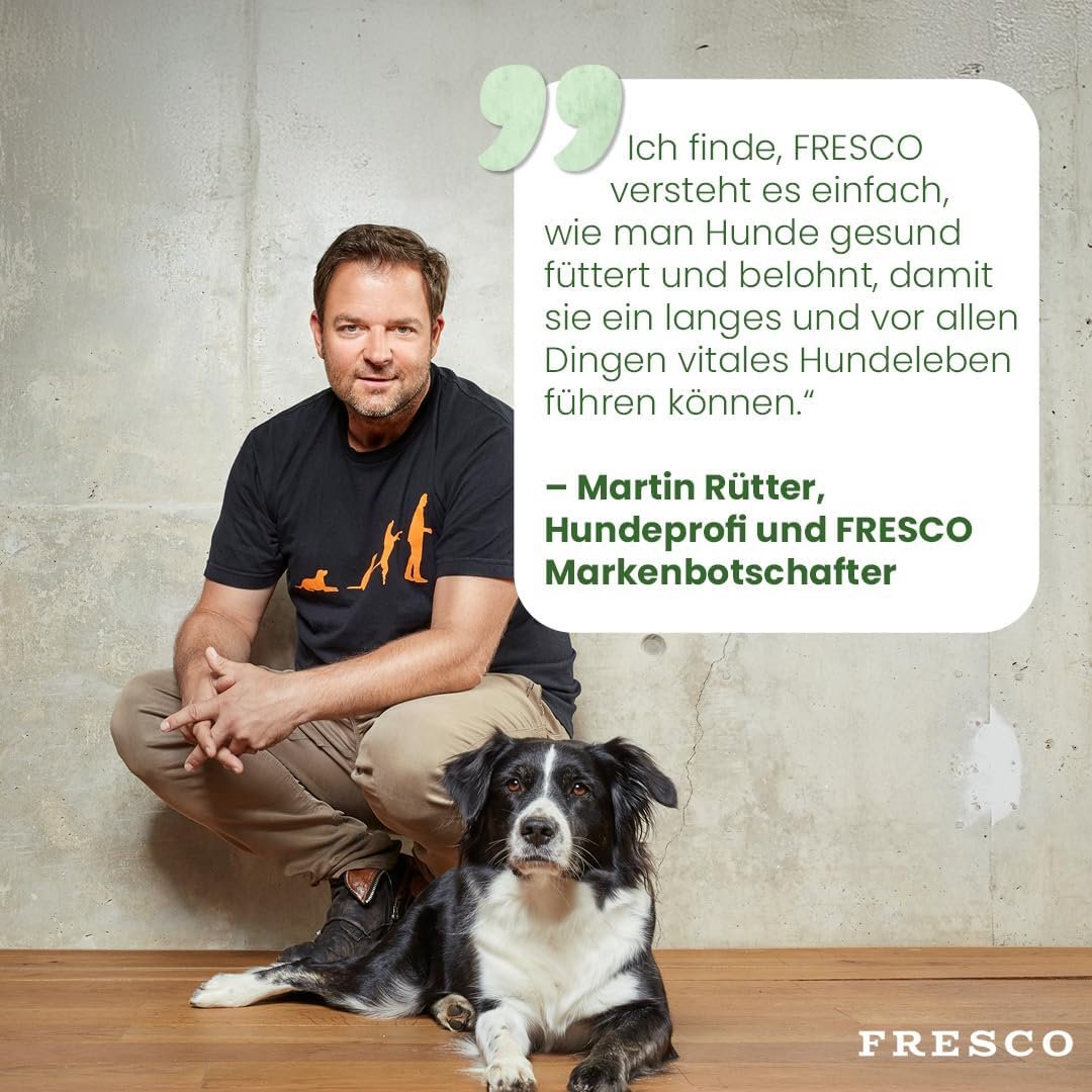 Mono-Protein-Buffet 92 %: Mit nur einer tierischen Proteinquelle ist der FRESCO Trainingsknöchel sehr schmackhaft und verträglich. Unsere Hundesnacks werden ausschließlich aus frischen Zutaten hergestellt und verzichten auf unnötige Aromen und Konservierungsstoffe