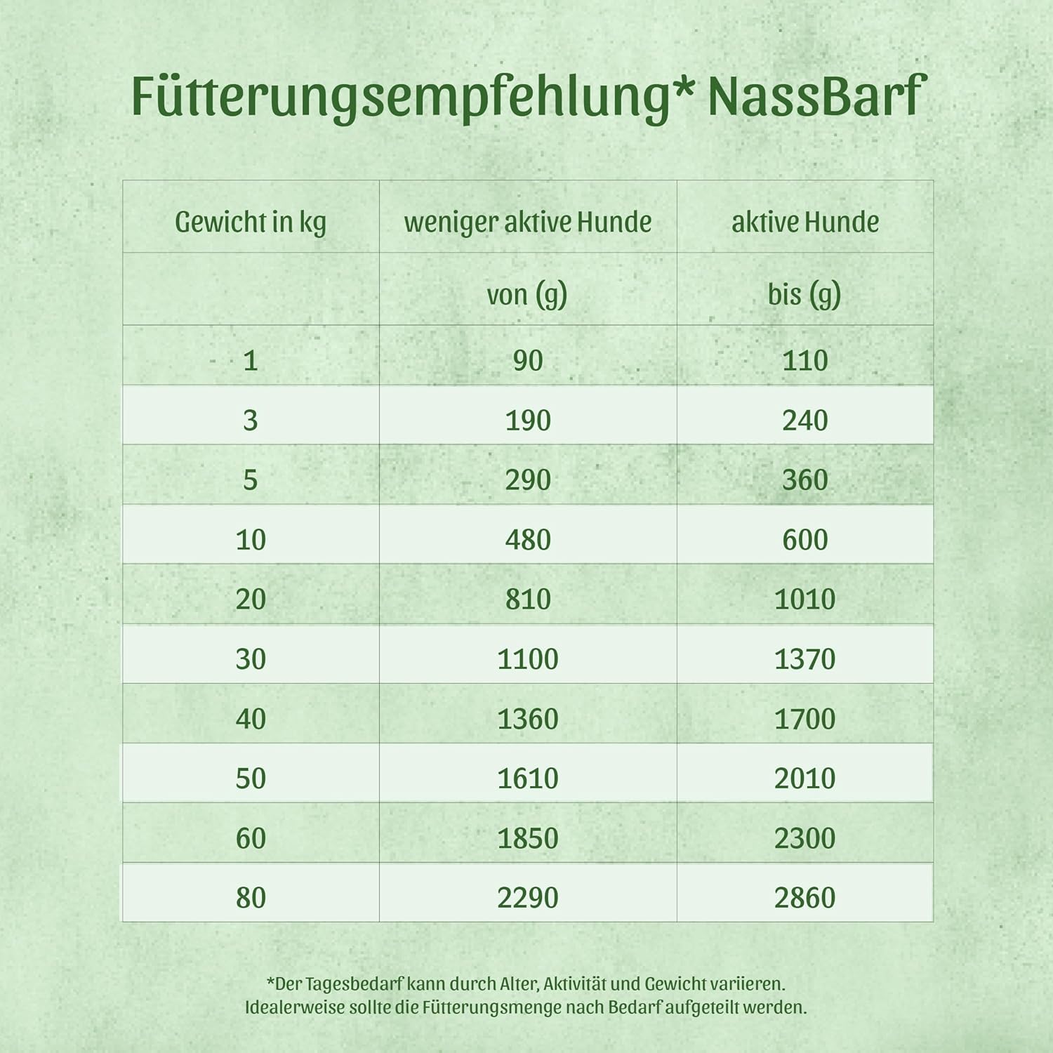 Unwiderstehlich lecker: Das Fresco Nassfutter für Hunde hat dank der frischen, hochwertigen Zutaten eine sehr hohe Geschmacksakzeptanz. Das 800 g Hundefutter lässt sich problemlos mit anderen BARF-Zusätzen wie Barf-Öl oder Barf-Booster kombinieren