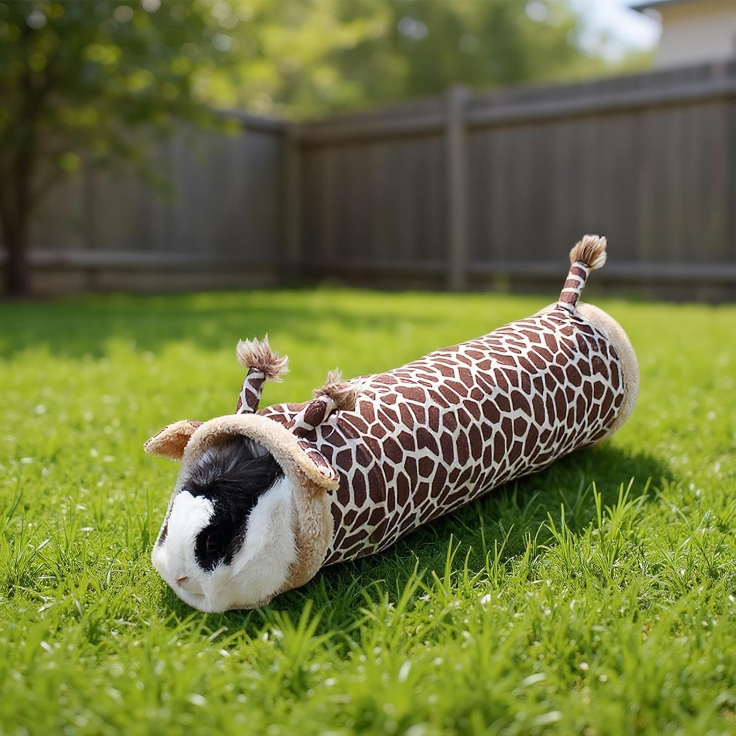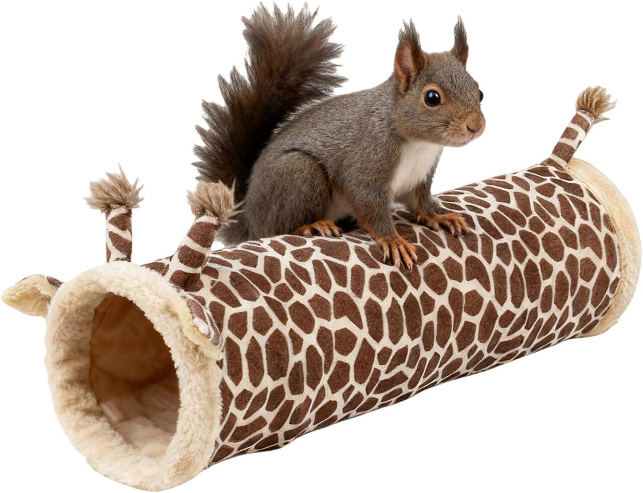 Der Frettchen tunnel mit einem einzigartigen Giraffendesign dient sowohl als Spielplatz als auch als Unterschlupf für kleine Haustiere wie Zwergkaninchen, Hamster und Frettchen und bietet einen idealen Raum zum Ausruhen und zur geistigen Anregung im Innenbereich. Dieses vielseitige Zubehör verbessert die häusliche Umgebung Ihres Haustieres, indem es eine höhlenartige Rückzugsmöglichkeit bietet, die natürliche Verhaltensweisen fördert und gleichzeitig als interaktives Spielzeug für geistige und körperliche Anregung dient. Entworfen, um Käfigzubehör zu ergänzen, gewährleistet der Frettchen tunnel eine sichere und ansprechende Ergänzung der täglichen Routine Ihres Haustieres.