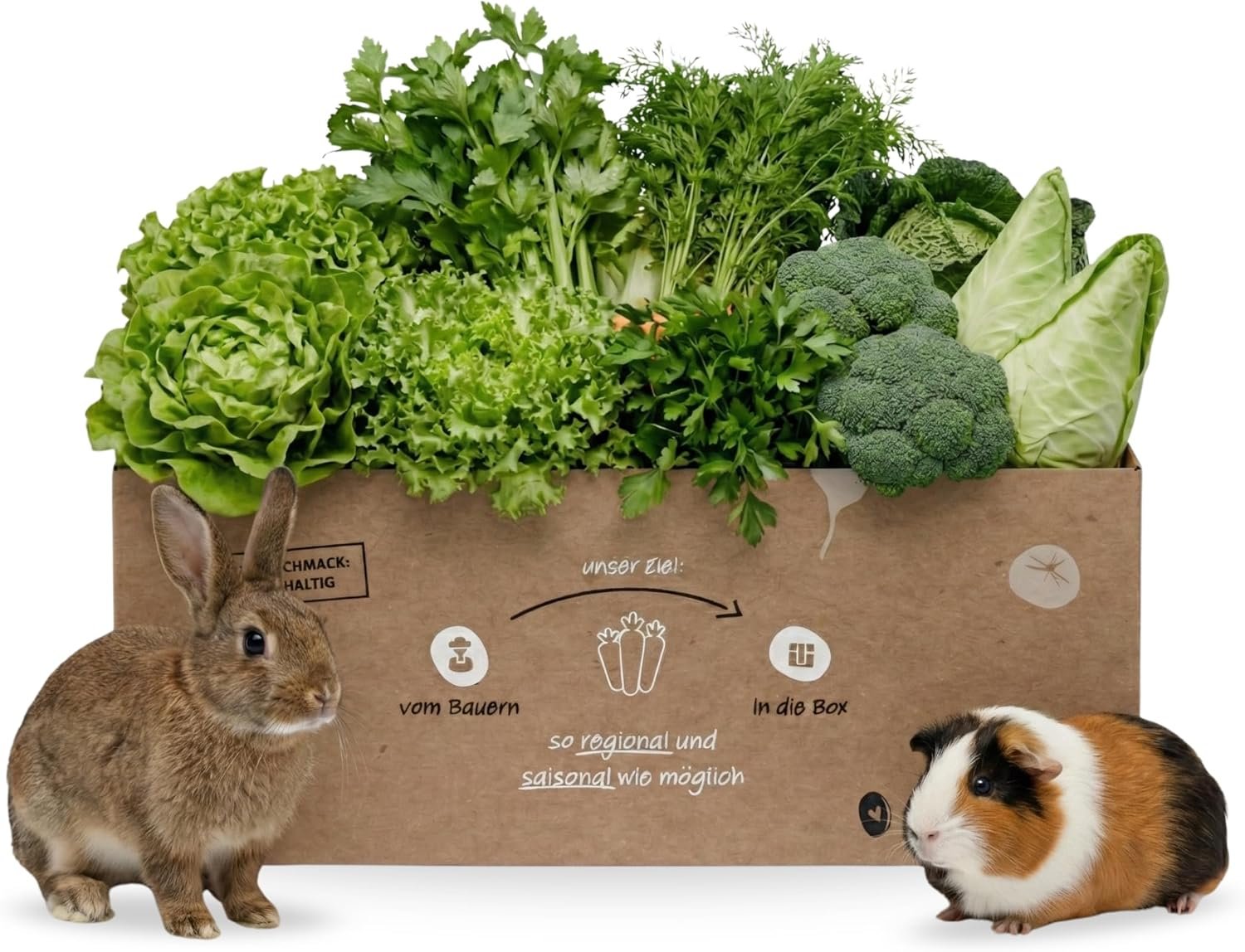 Aus Kundenanfragen! Viele wollten frisches Gemüse für ihre Tiere – also haben wir Boxen entwickelt, die perfekt für Kaninchen & Meerschweinchen sind.