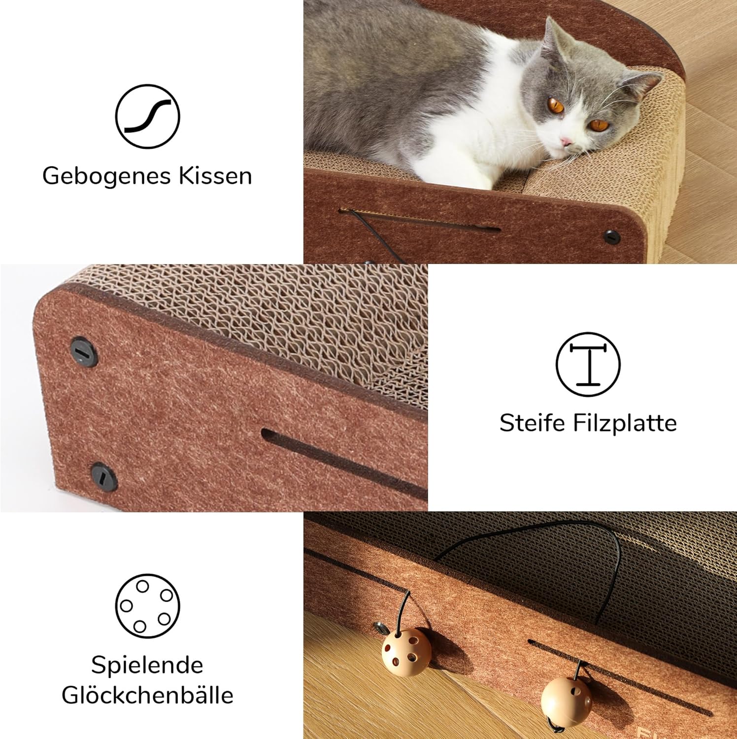 Langanhaltender Kratzspaß – die Kratzbretter sind hochwertig verarbeitet und bestehen aus stabiler, umweltfreundlicher und langlebiger Wellpappe und Filz.