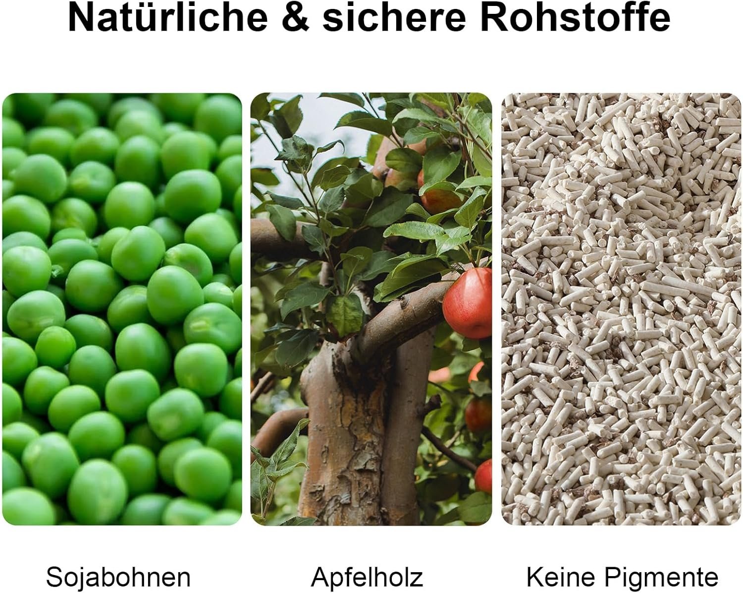 Katzenstreu mit natürlichen Inhaltsstoffen – 80 % Tofu-Katzenstreu und 20 % natürliches desodoriertes Apfelholz, unparfümierte Katzenstreu ohne Pigmente oder Duftstoffe, die aus pflanzlichen Inhaltsstoffen hergestellt wird, um Gerüche zu beseitigen und sichere Katzenstreu herzustellen.