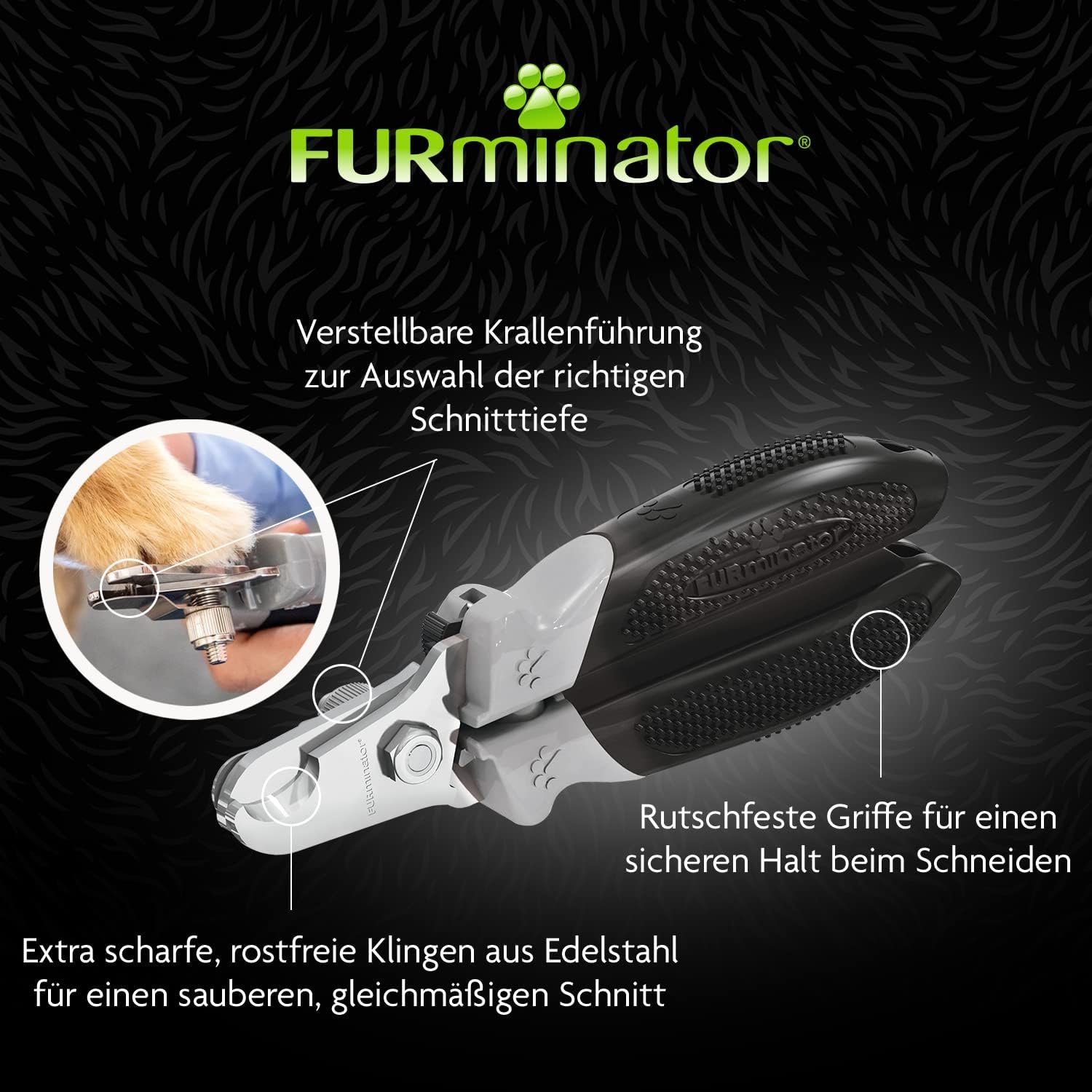 Mit der verstellbaren Krallenführung können Sie die Schnitttiefe wählen – für eine sichere Anwendung, ohne das Tier zu verletzen