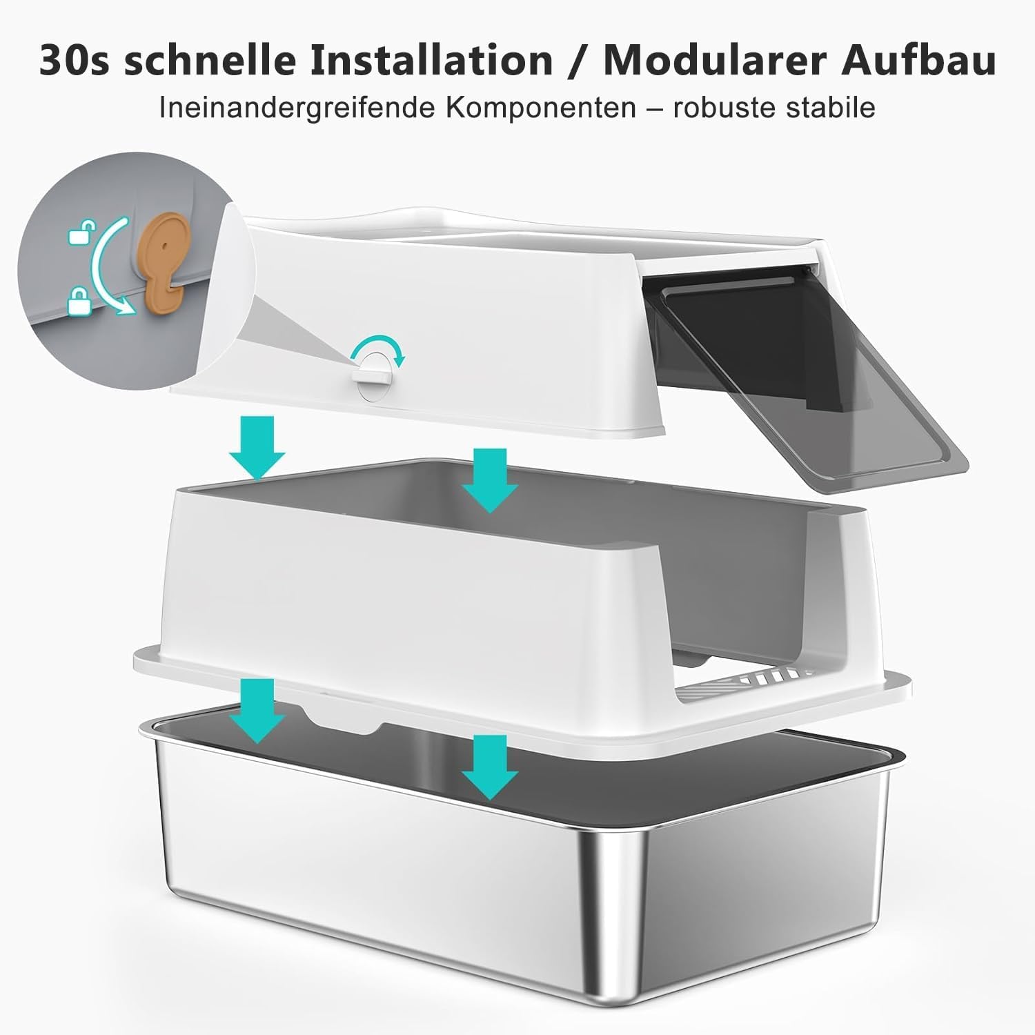 Ihre ultimative Katzentoilette aus Edelstahl: Sind Sie es leid, die Katzentoilette häufig zu wechseln? Wechseln Sie zu unserer extra großen Katzentoilette aus Edelstahl und sie hält bis zu 5 Jahre, ohne ihre Form zu verlieren. Im Gegensatz zu Kunststoff sind unsere Katzentoiletten aus Edelstahl einfacher zu reinigen, robuster und weniger bruchanfällig, sodass sie nicht so oft ausgetauscht werden müssen.