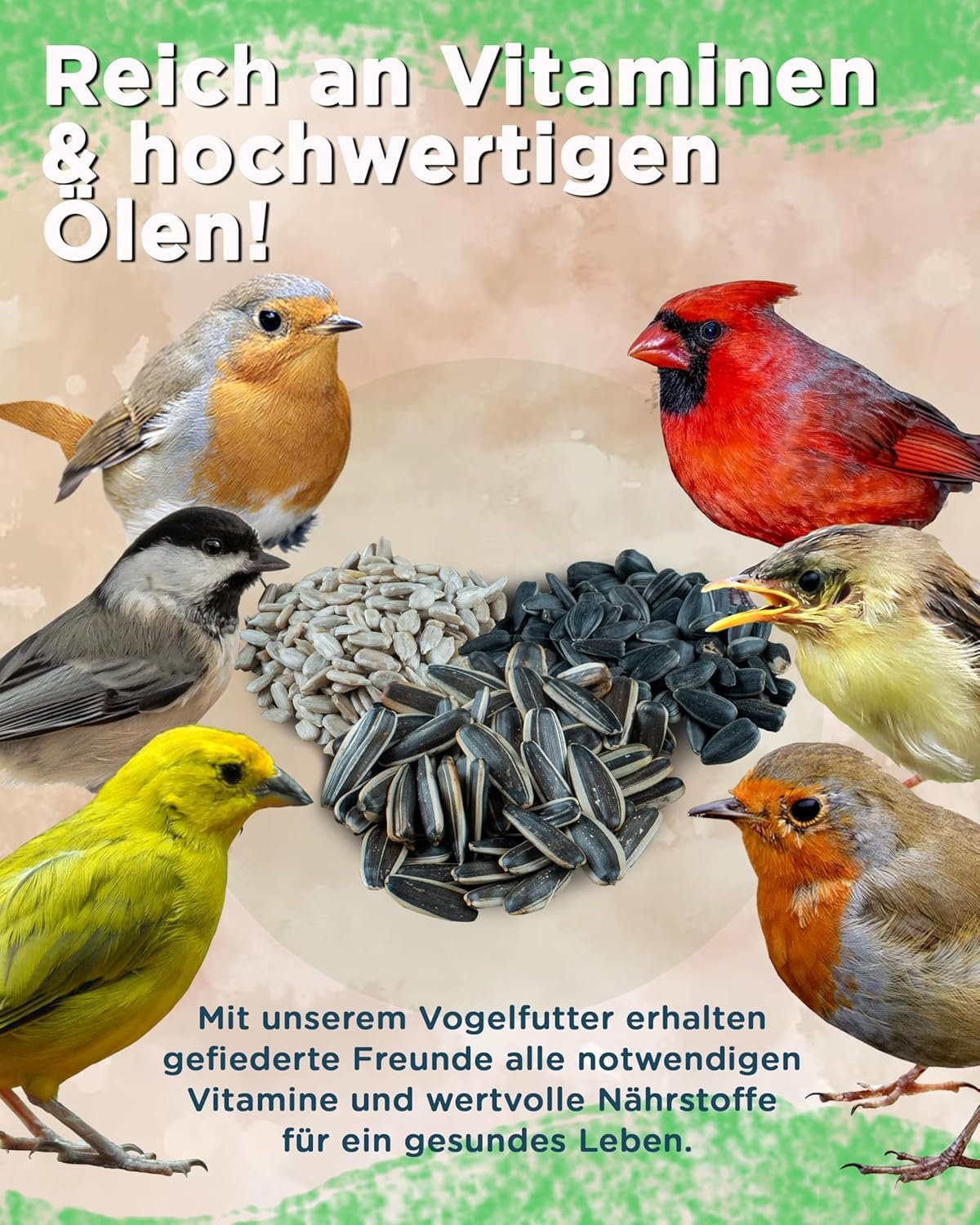 Vielseitig – Ideal für Futterhäuschen, Vogelstationen und Bodenfutterhäuschen – geeignet für Meisen, Finken, Spatzen und mehr.
