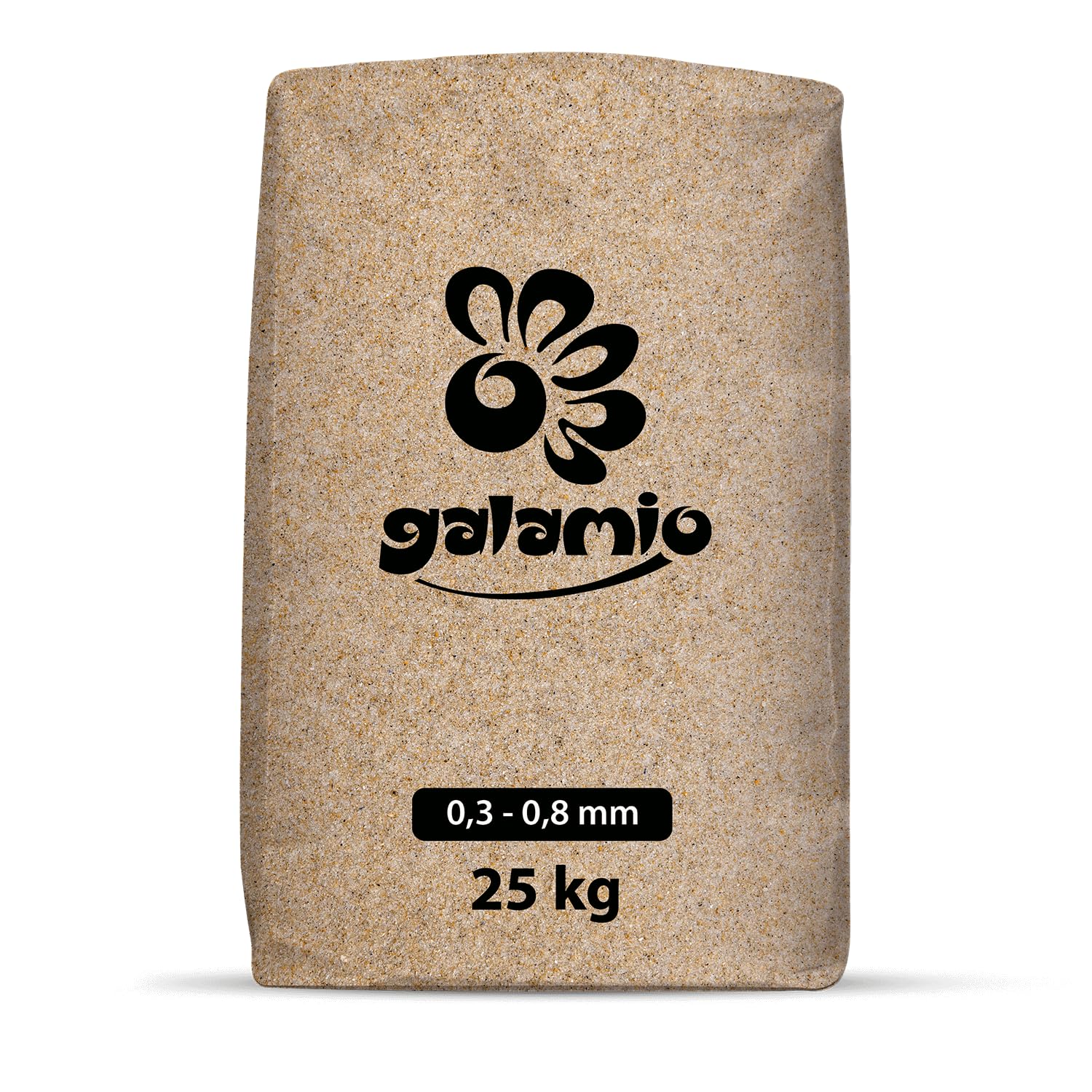 Quarzsand. Hergestellt in Deutschland. Quarzsand von GALAMIO ist ein hochreiner Sand mineralischen Ursprungs, der in der Lausitz abgebaut wird. Das körnige Material wird nach dem Abbau mehrfach gewaschen und von organischen Bestandteilen und Schlammstoffen befreit. Der Sand hat eine hellbeige bis ockerfarbene Farbgebung und weist keine scharfen Kanten auf.