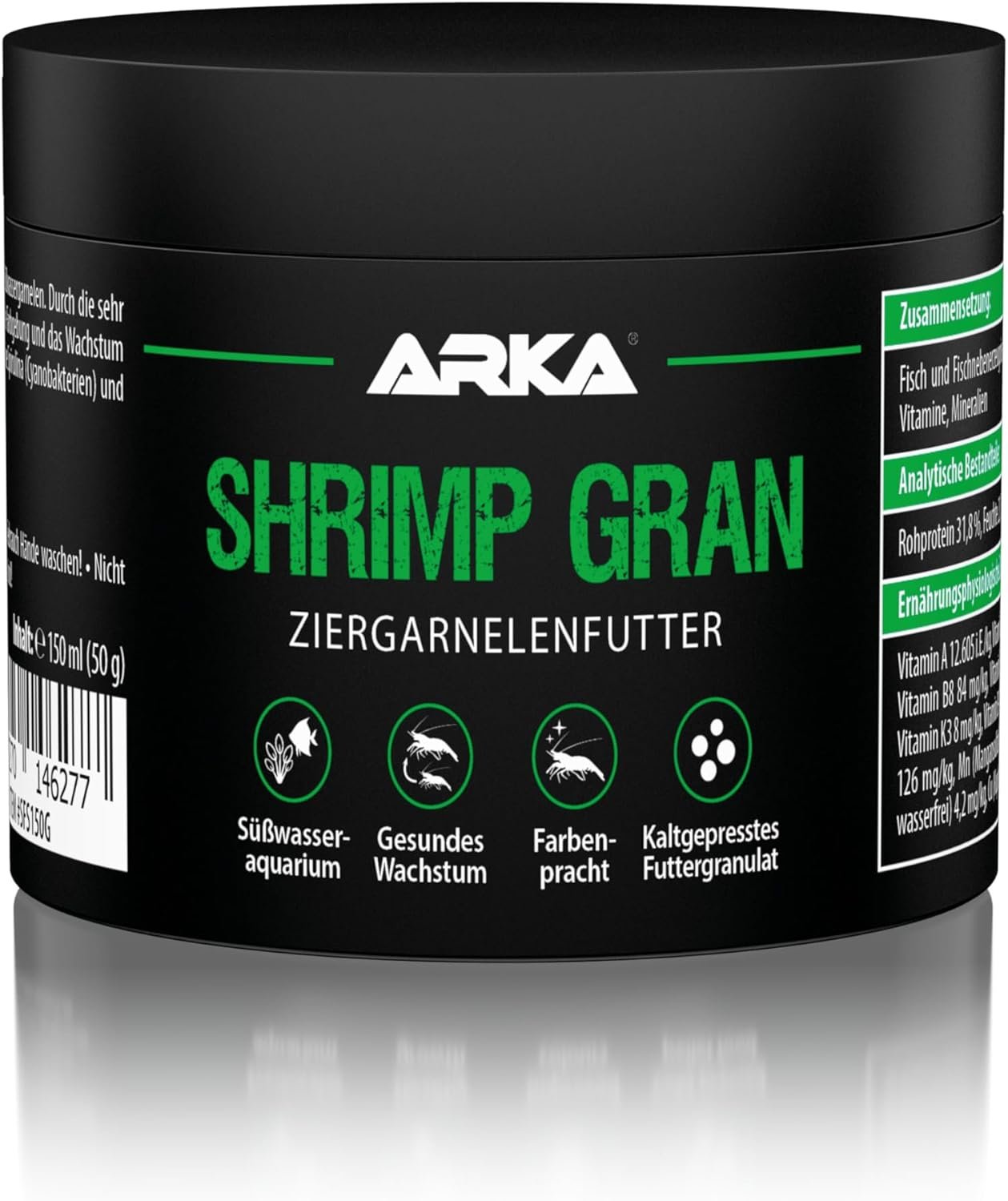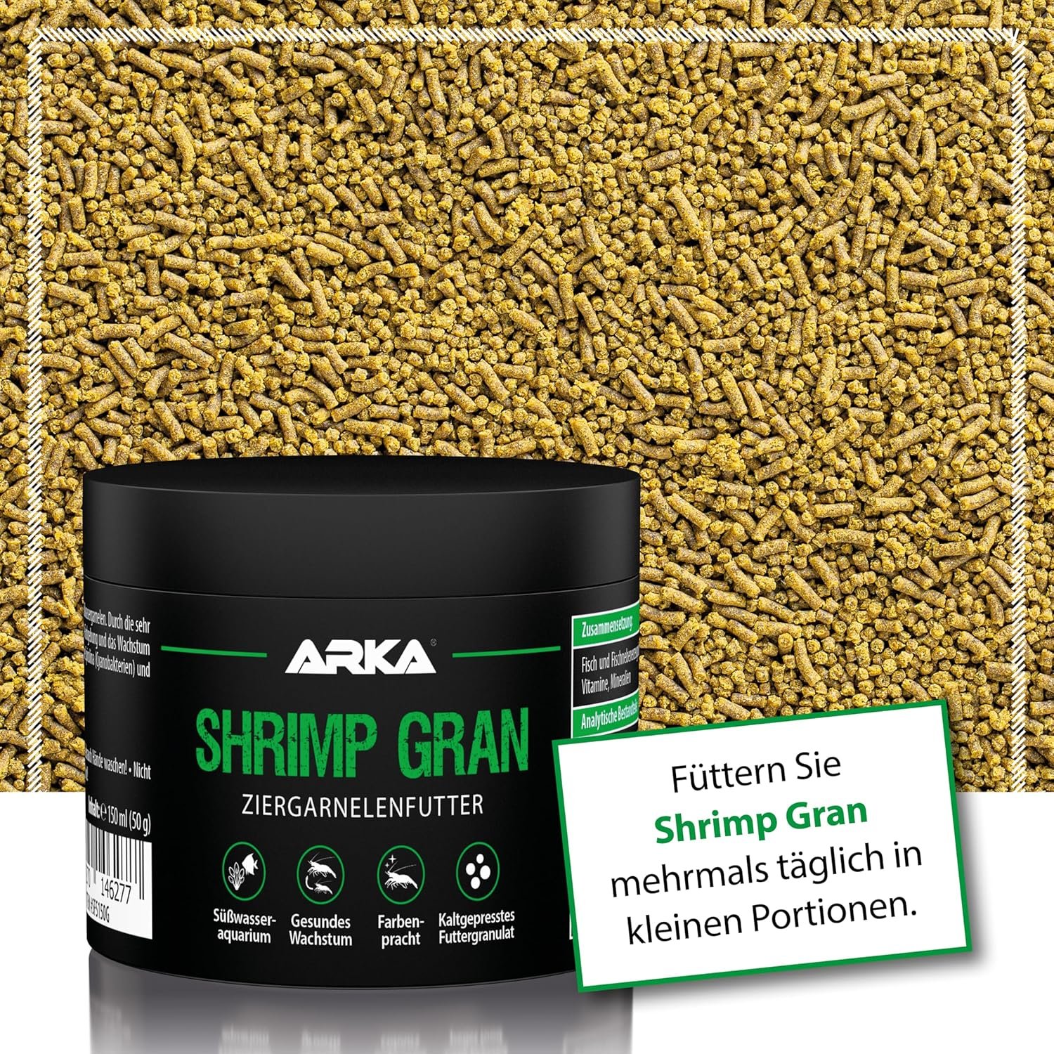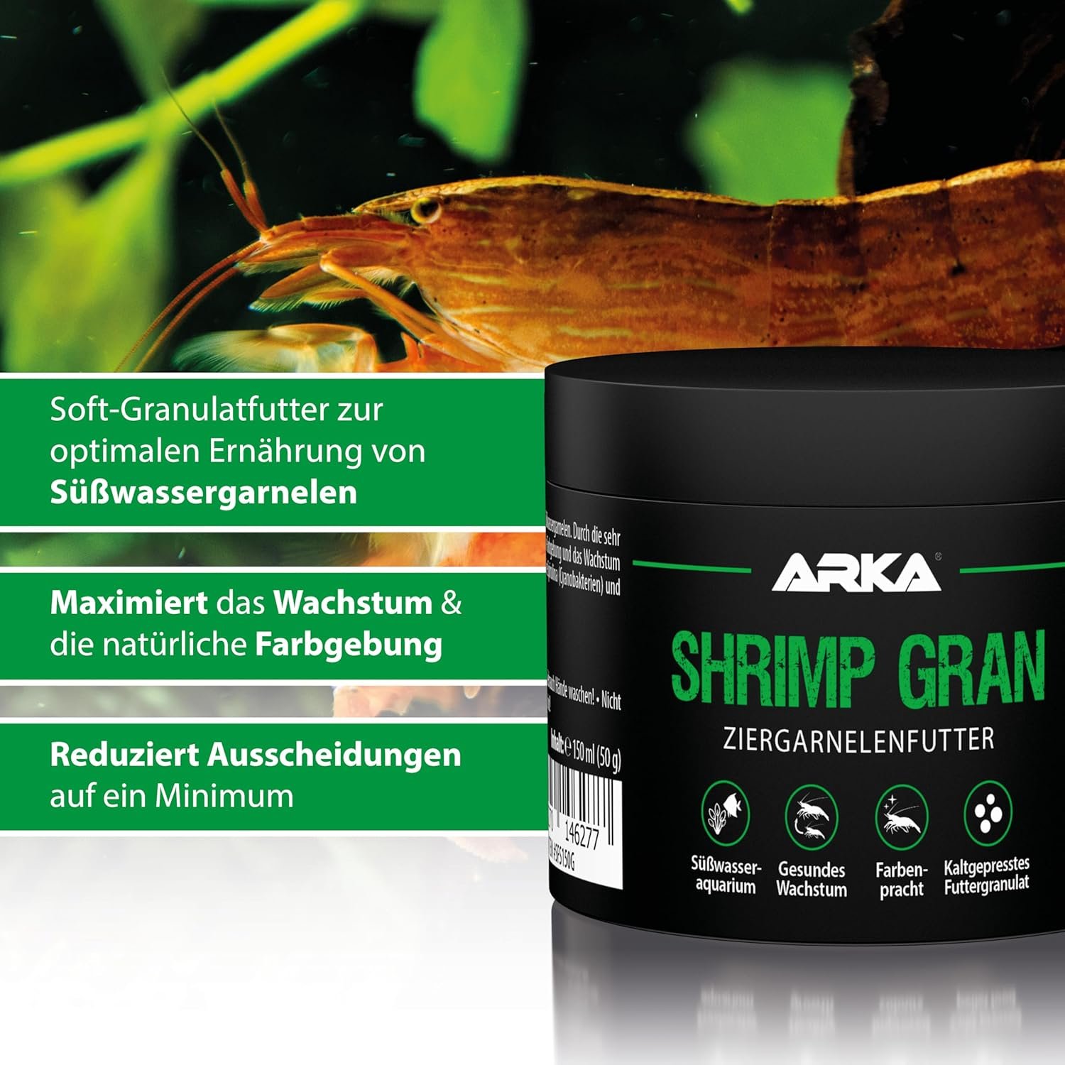 Entwickelt für anspruchsvolle Garnelenhalter – bewährt im Fachhandel und in der Zucht – kompatibel mit Jungtieren und erwachsenen Tieren – ARKA-Qualität aus Erfahrung: Premium-Softgranulat für gesunde, aktive Garnelen.