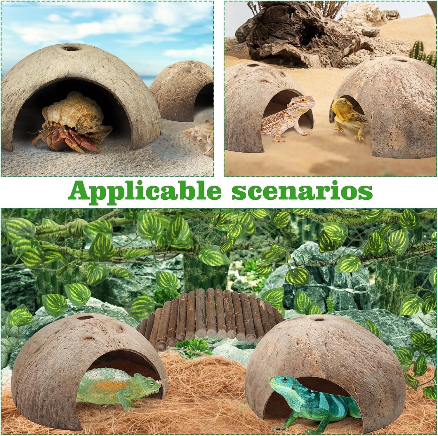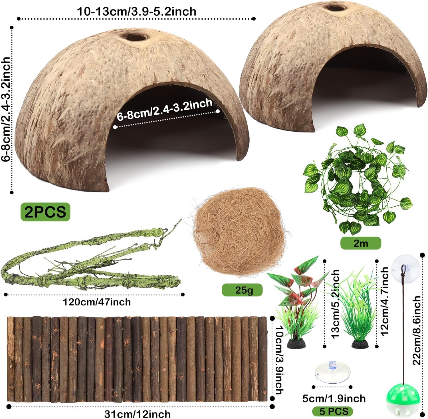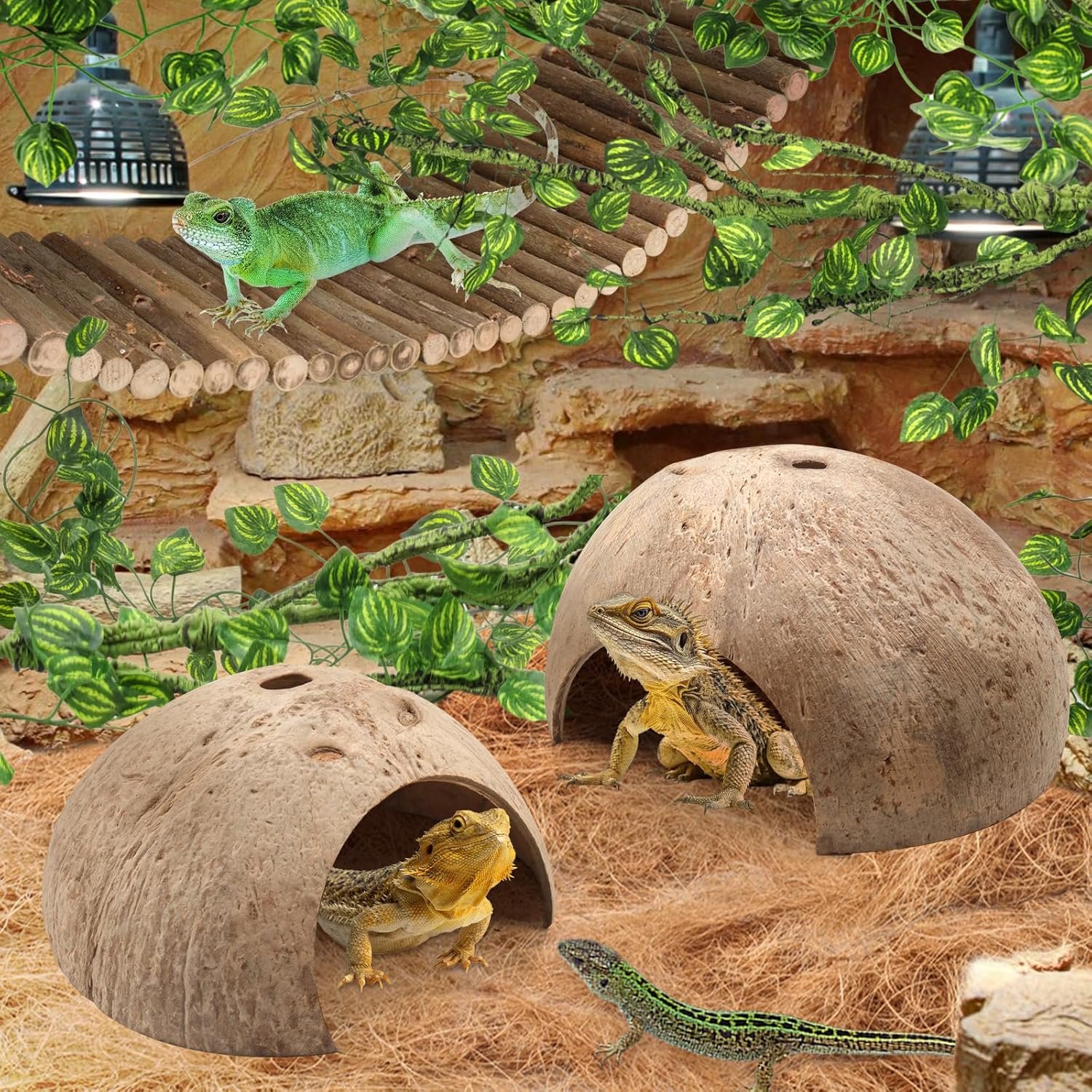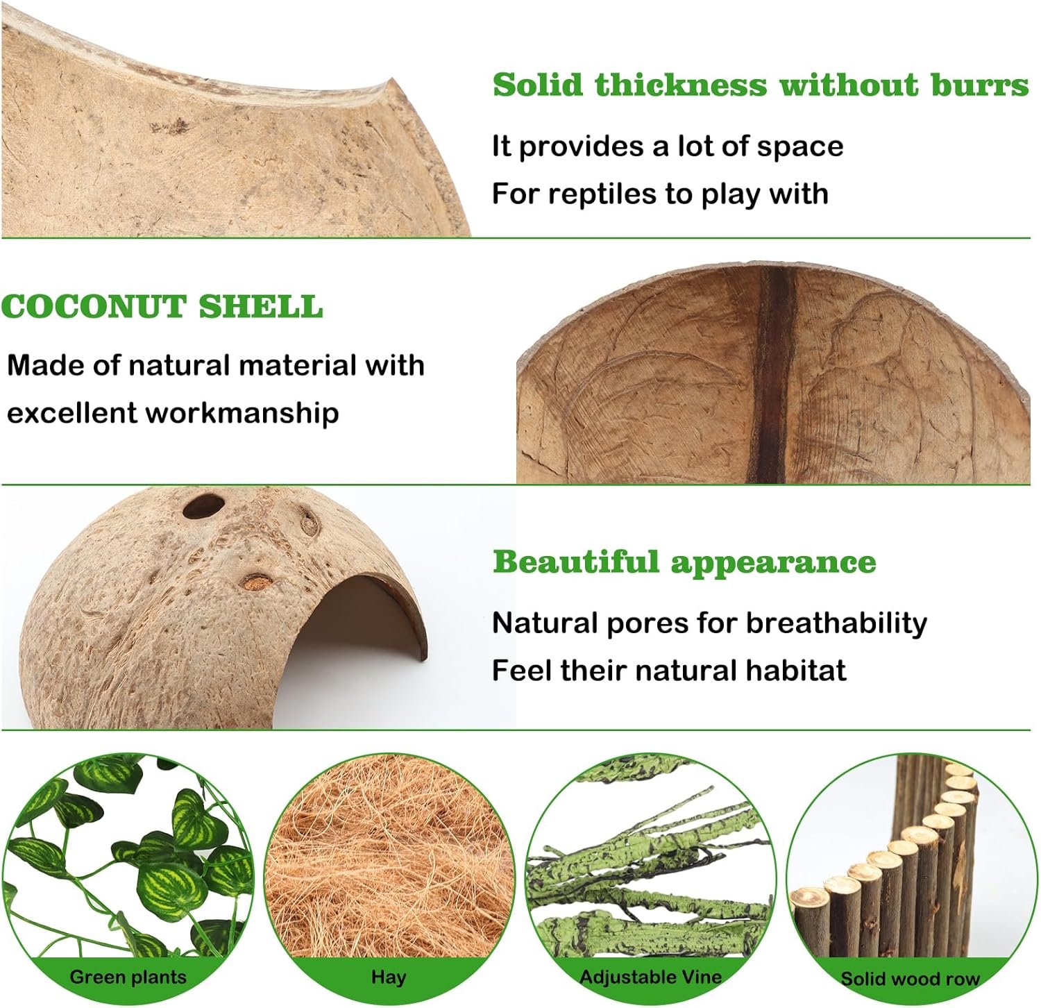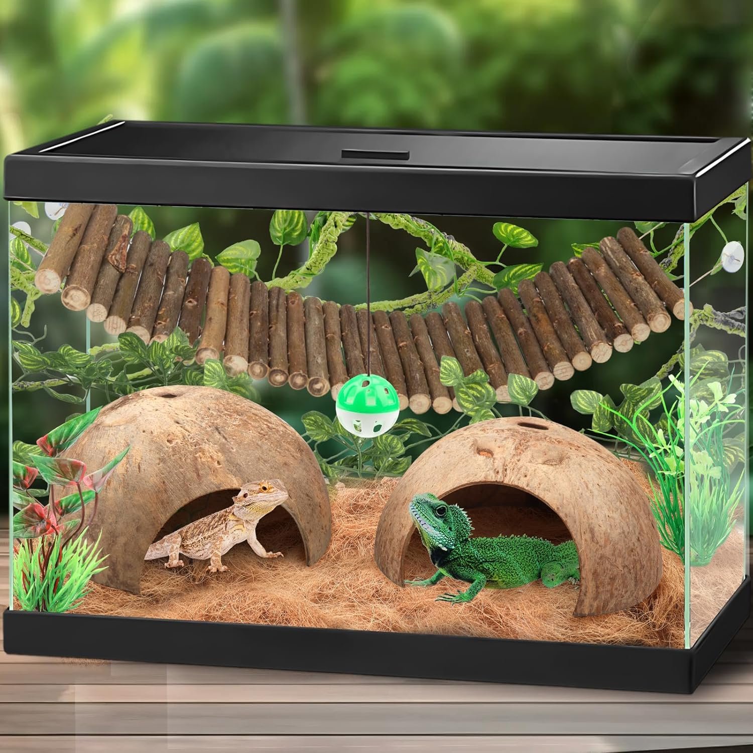 QUOZUO Zubehör für Gecko-Aquarien, Kletterpflanzen, Hängepflanzen mit Kokosnussschalen, Brückenversteck für Einsiedlerkrebse, Dekoration für Bartagamen, Eidechsen, Chamäleon, Gecko, Schildkröte, Schlange