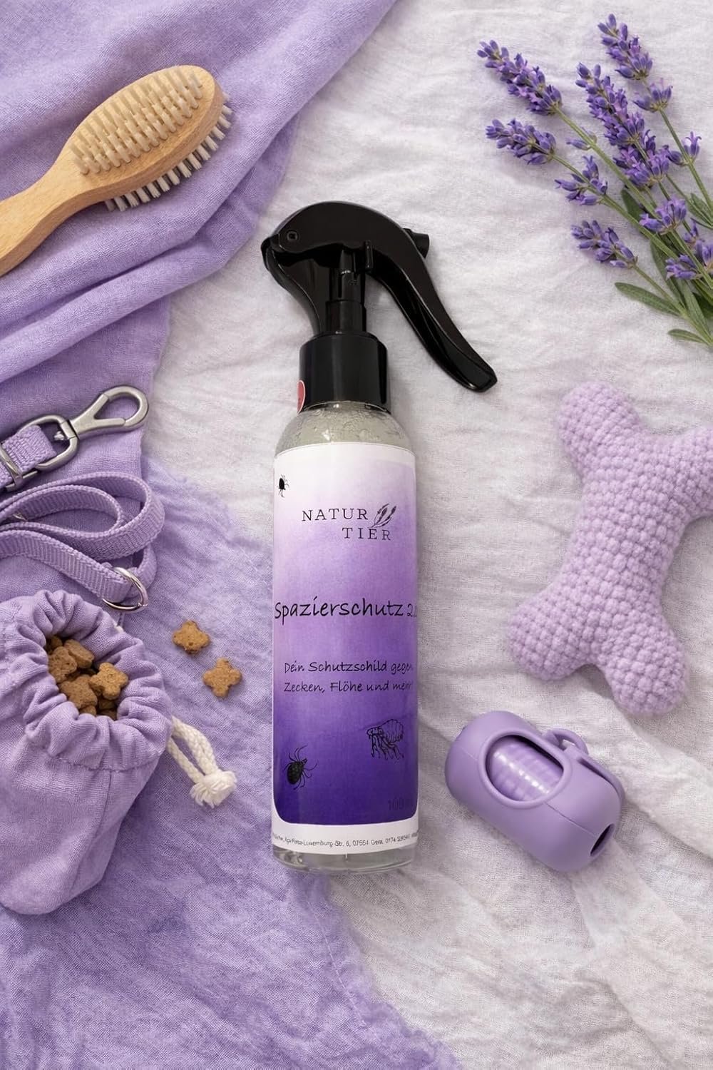 Empfohlene Verwendung: Vor Gebrauch schütteln. Der Spray von ca. 5 cm direkt auf das Fell des Tieres sprühen. Immer so viel verwenden, wie das Fell leicht benetzt ist. Je nach Größe können dies zwischen 3 und 20 Sprühstößen sein. Augen und Atemwege aussparen. Nach der Anwendung verbleibt das Spray bis zu 3 Tage im Fell. Sollte Ihr Haustier zwischen dem Baden oder Regen nass werden, tragen Sie es bitte erneut auf, wenn es trocken ist. Bei Hochzeiten empfehlen wir die tägliche Anwendung. Anschließend ist ein direkter Körperkontakt mit dem Tier möglich. Wenn das Tier keine Sprühgeräusche mag, nehmen Sie das Spray in die Hand und verteilen Sie es dann auf dem Tier. Anschließend waschen Sie sich bitte gründlich die Hände.
