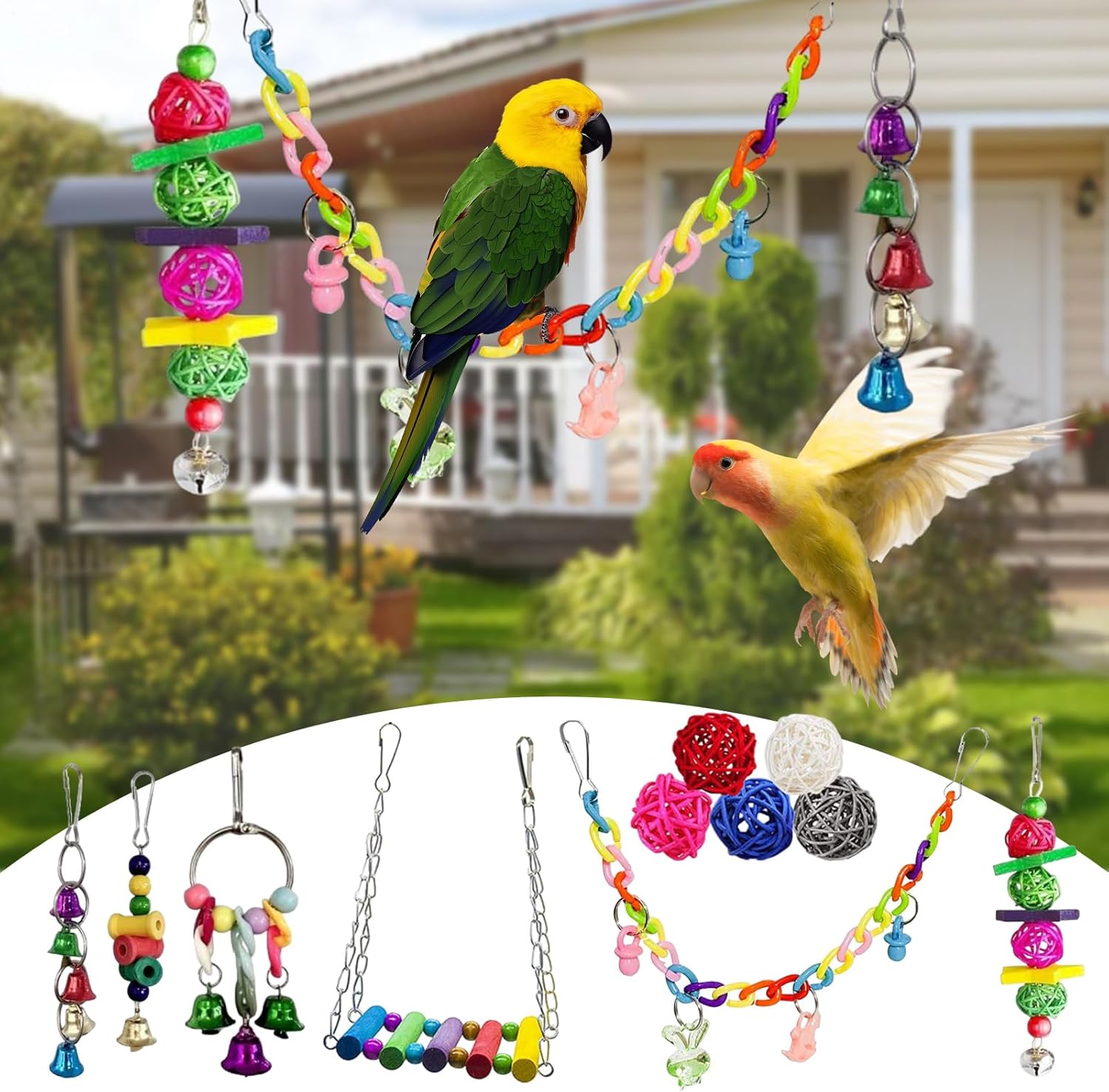 Anti-Apathie Spielzeug für Papageien: Entworfen mit 11 einzigartigen Teilen, dient dieses Kauspielzeug-Set als attraktive und abwechslungsreiche Ergänzung für den Käfig, fördert interaktives Spielen und lindert Unruhe, indem es konstante tägliche Unterhaltung für verspielte und neugierige Geflügeltiere im Haus bietet.
