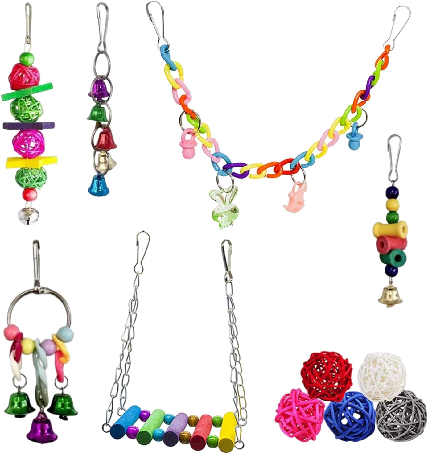 Anti-Apathie Spielzeug für Papageien: Entworfen mit 11 einzigartigen Teilen, dient dieses Kauspielzeug-Set als attraktive und abwechslungsreiche Ergänzung für den Käfig, fördert interaktives Spielen und lindert Unruhe, indem es konstante tägliche Unterhaltung für verspielte und neugierige Geflügeltiere im Haus bietet.