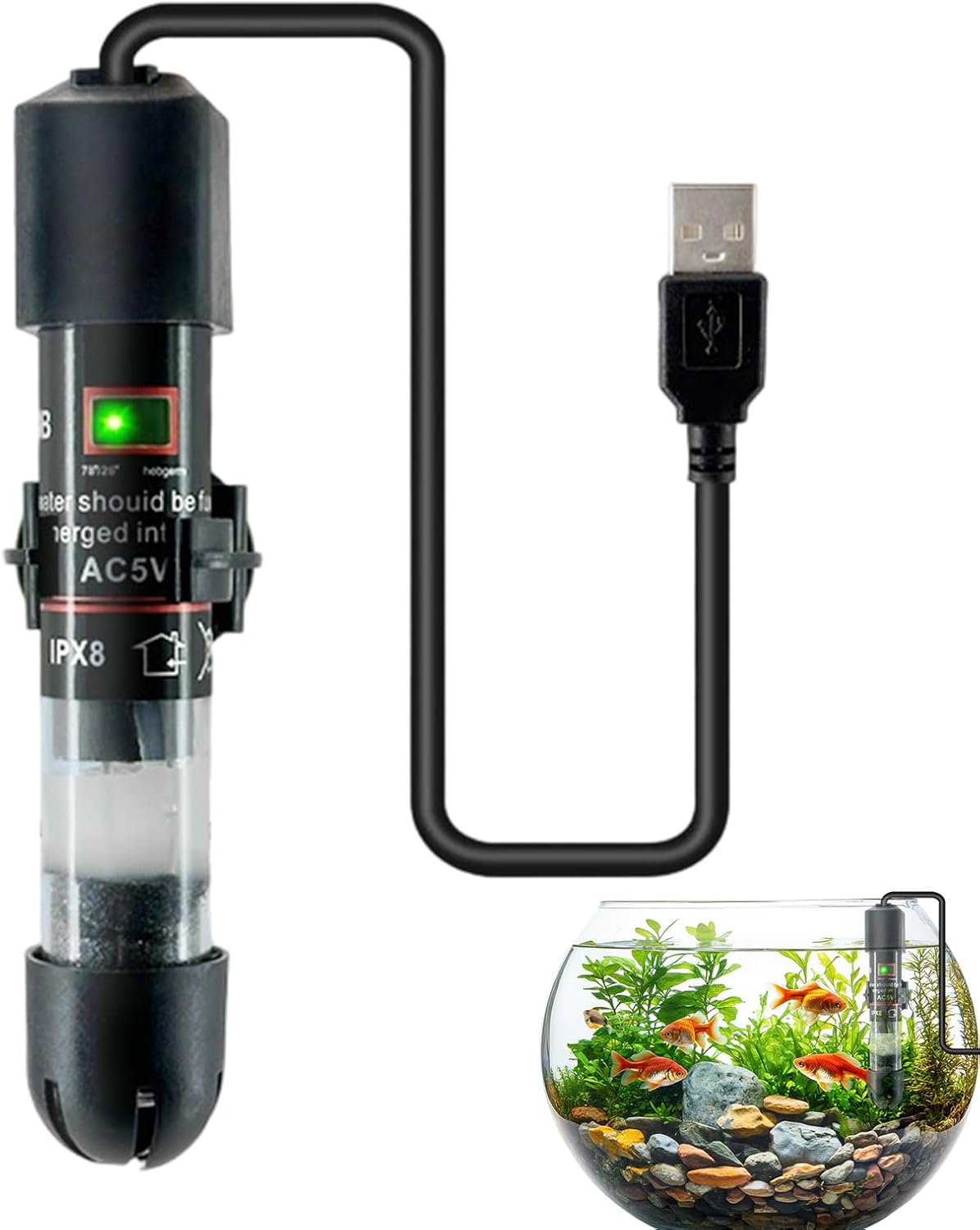 Temperaturregelung: Mit seiner USB-Anpassungsfähigkeit bietet dieser kleine Aquarienwärmer eine innovative Methode zur Regulierung der Wassertemperatur von außen in tragbaren Setups. Es sorgt dafür, dass Ihre Tiere auch bei häufigem Reisen im Haus bequem und gesund bleiben, während eine konstante und sichere Heizung für eine optimale Wasserumgebung in jeder Situation durchgeführt wird.