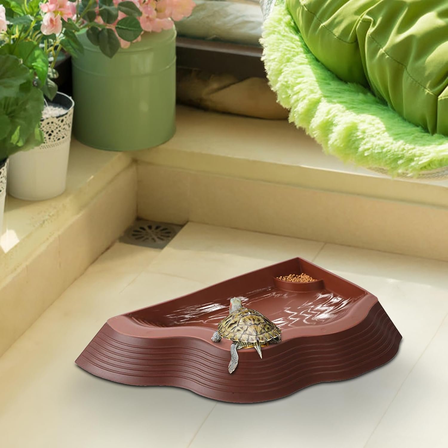 Stabilität für Reptilien: Robuste Konstruktion die ein Verrutschen am Beckenboden verhindert, mit anti-rutsch Rampe zur Unterstützung von Schlangen bei der Häutung und Reduzierung von Ertrinkungsrisiken, ideal für die Badebedürfnisse von Schildkröten