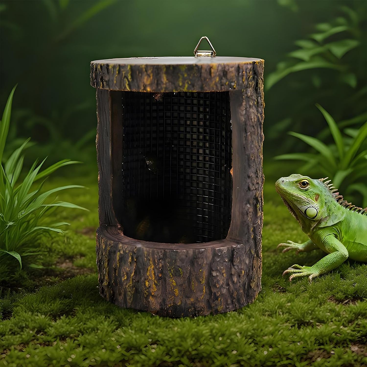 Terrarium Dekoration mit Haken: Dieser Futtertierbehälter verfügt über einen integrierten Aufhänghaken für eine sichere Montage an der Terrarienwand. Dies hält die Futtertiere organisiert und stets griffbereit zur Fütterungszeit, während es gleichzeitig die optische Attraktivität des Reptilienhabitats erhöht.