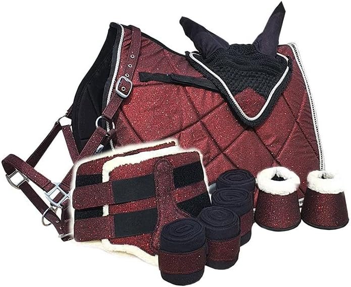 German Riding Perfect Match Schabracken-Set, Hufglocken, Halfter, Fliegenschutz, Bandagen, Gamaschen, Glitzer, Shetty Pony, Cob Full (WB) (Full, Bordeaux)