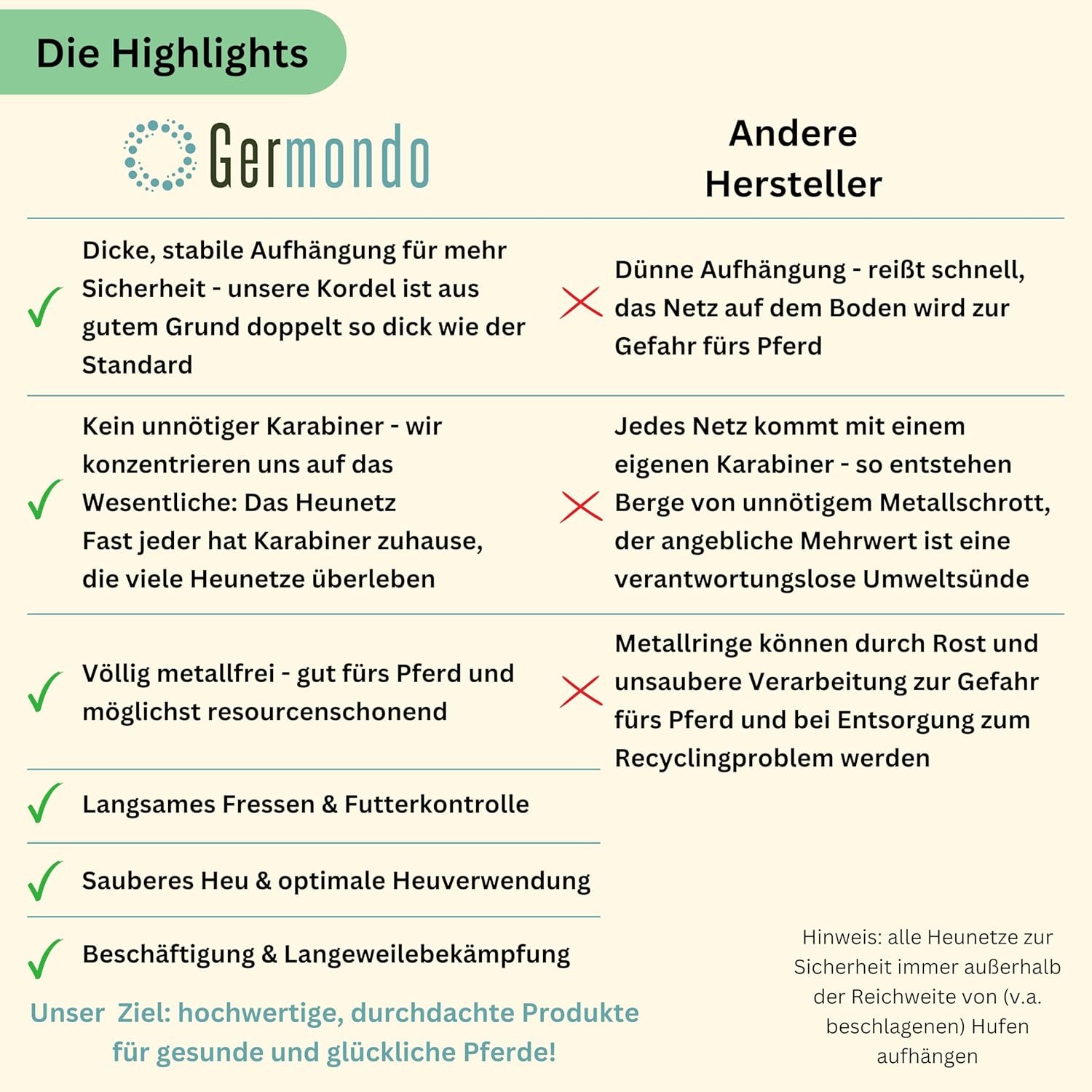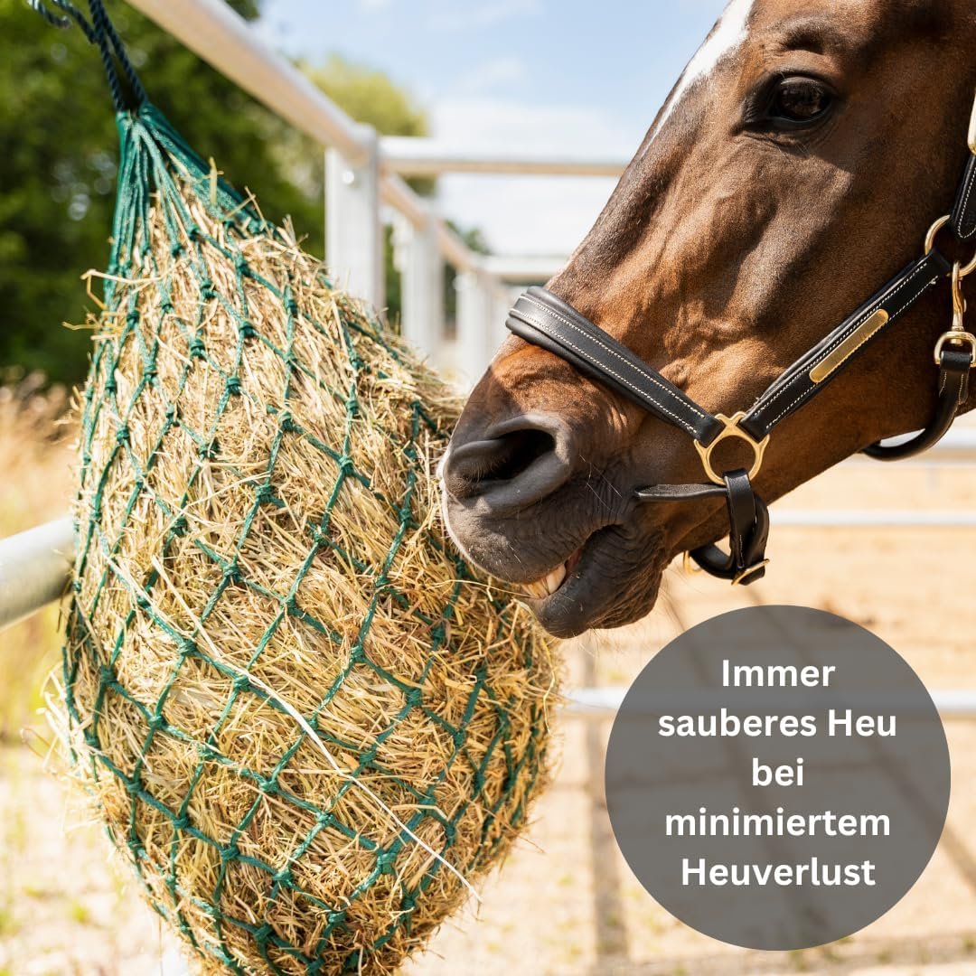 Wir wissen, dass Sie möchten, dass Ihr Pferd gesund und glücklich ist. Hier kommt unser Heunetz ins Spiel. Ihr Pferd wird sein Heu langsam, natürlich und gesund genießen und den ganzen Tag beschäftigt und glücklich sein. Und wer möchte nicht, dass sein Pferd auch dann fröhlich ist, wenn es alleine im Stall ist?