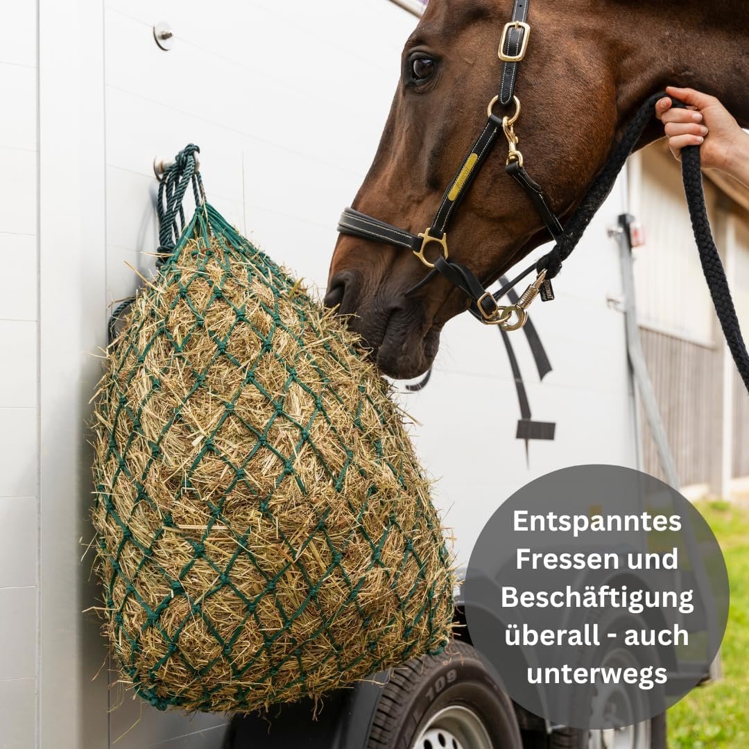 Slow Food für Pferde: Kein Trend für Ihren Vierbeiner, aber ganz natürlich. Das feinmaschige Netz lädt zum gemütlichen Heuknabbern ein. Tschüss Koliken und hallo entspannter Gourmetgenuss