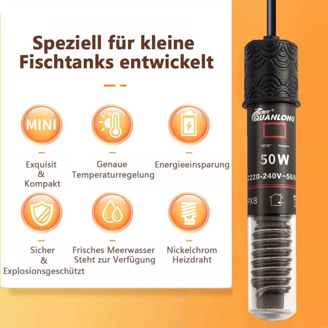 50W Mini-Aquarium-Heizstab, Thermostat-Aquarium-Schildkrötenheizer für kleine Aquarien für Salzwasser und Süßwasser mit 99 cm Netzkabel
