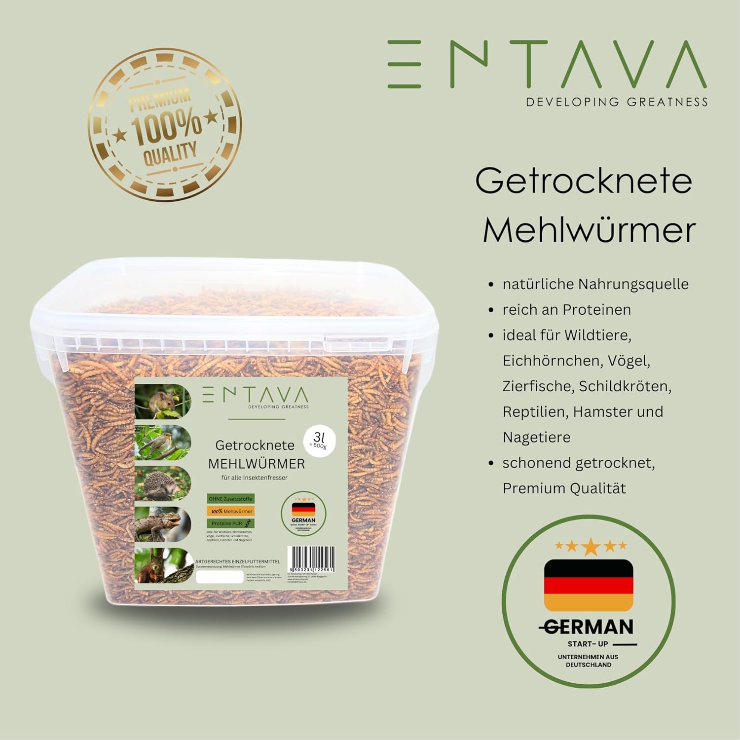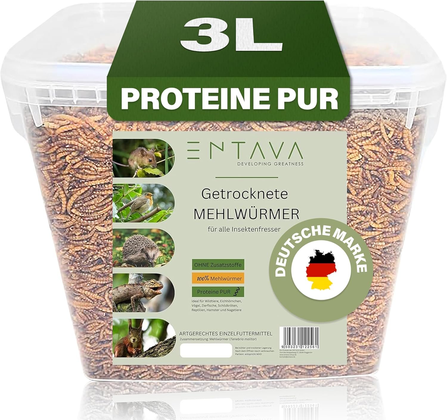 Hoher Nährwert für viele Tierarten: Futtermittel für Reptilien, Nagetiere, Wildtiere und Vögel sowie Ergänzungsfuttermittel für Fische und andere Insektenfresser. Reich an natürlichem Protein und ideal für eine artgerechte Ernährung.