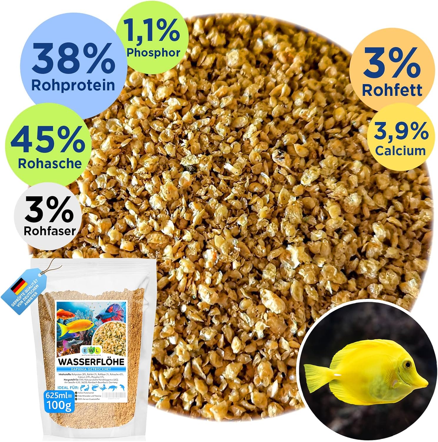 Natürlich: Unsere getrockneten Wasserflöhe sind ein reines Naturprodukt und völlig frei von Zusatzstoffen.
