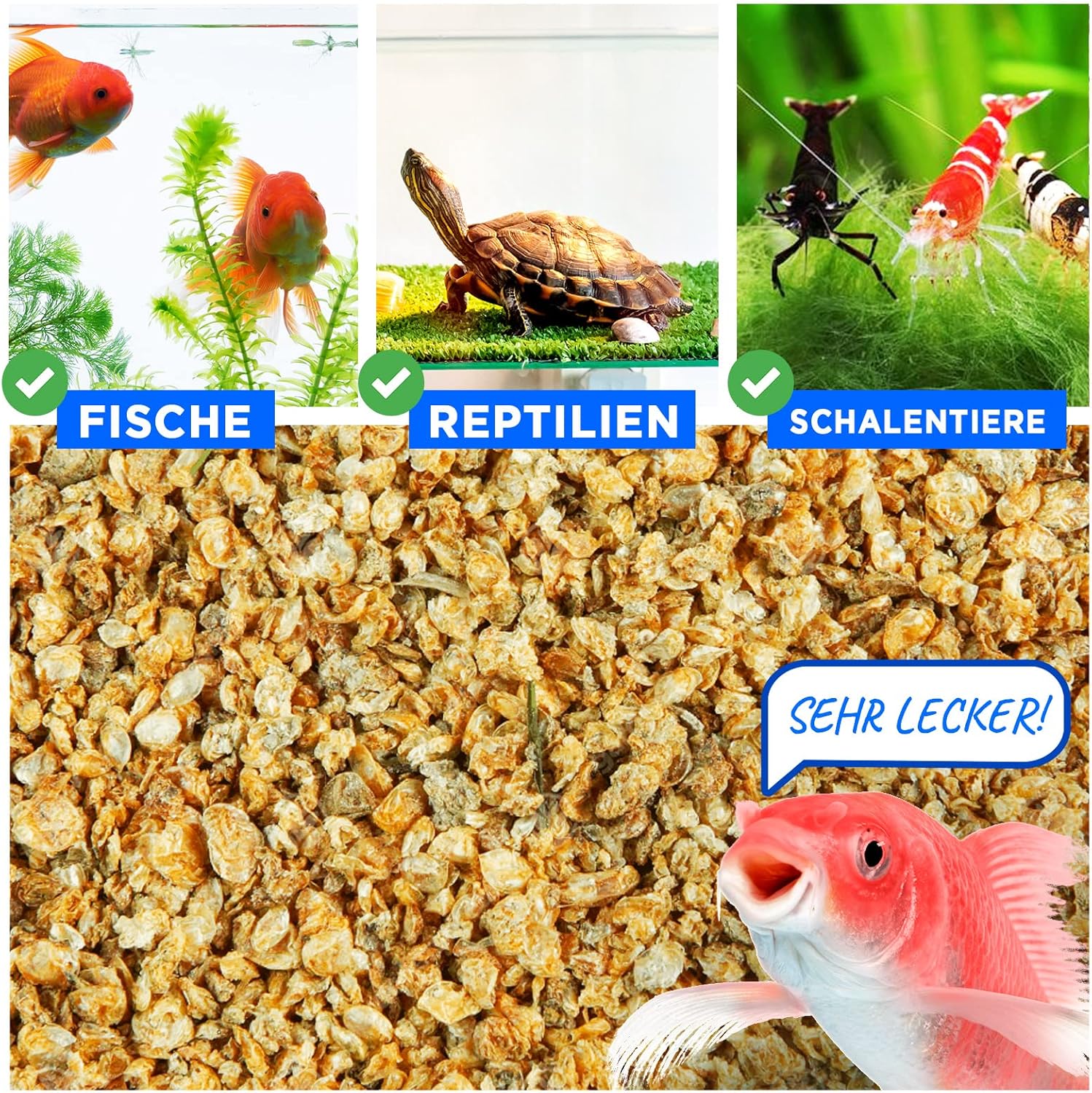 Leckerer Snack: Unser Fischfutter ist ein optimaler Snack für alle Aquarien-Zierfische, Goldfische, Wasserschildkröten, Koi, Krebse und Krebse.