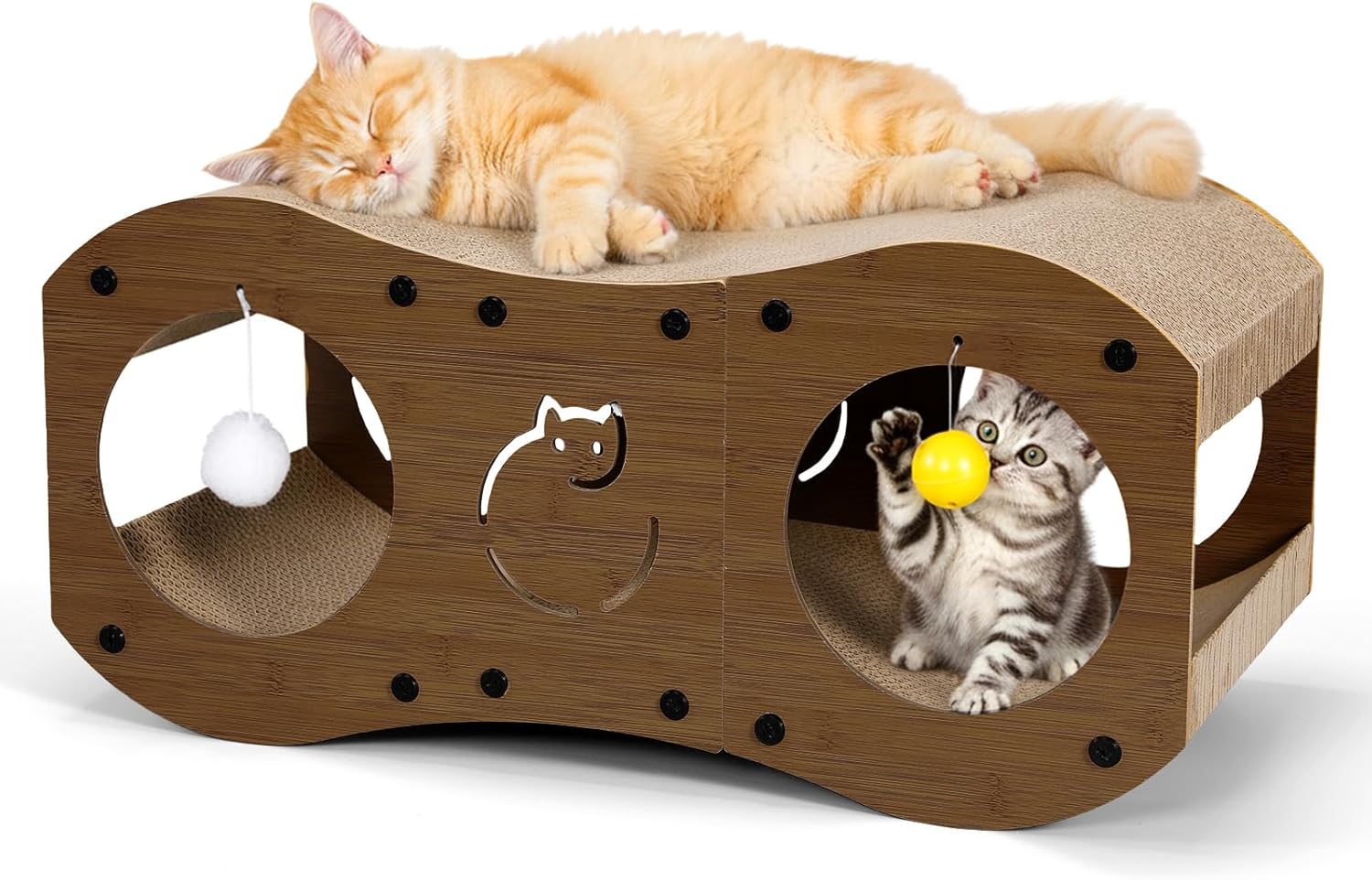 Gimars Katzenkratzbrett Groß XXL, 8-förmiges Katzenhaus aus Pappe mit Spielball, Kratzpappe für Katzen im Innenbereich, Kratzmöbel zum Schutz von Möbeln (Walnuss)