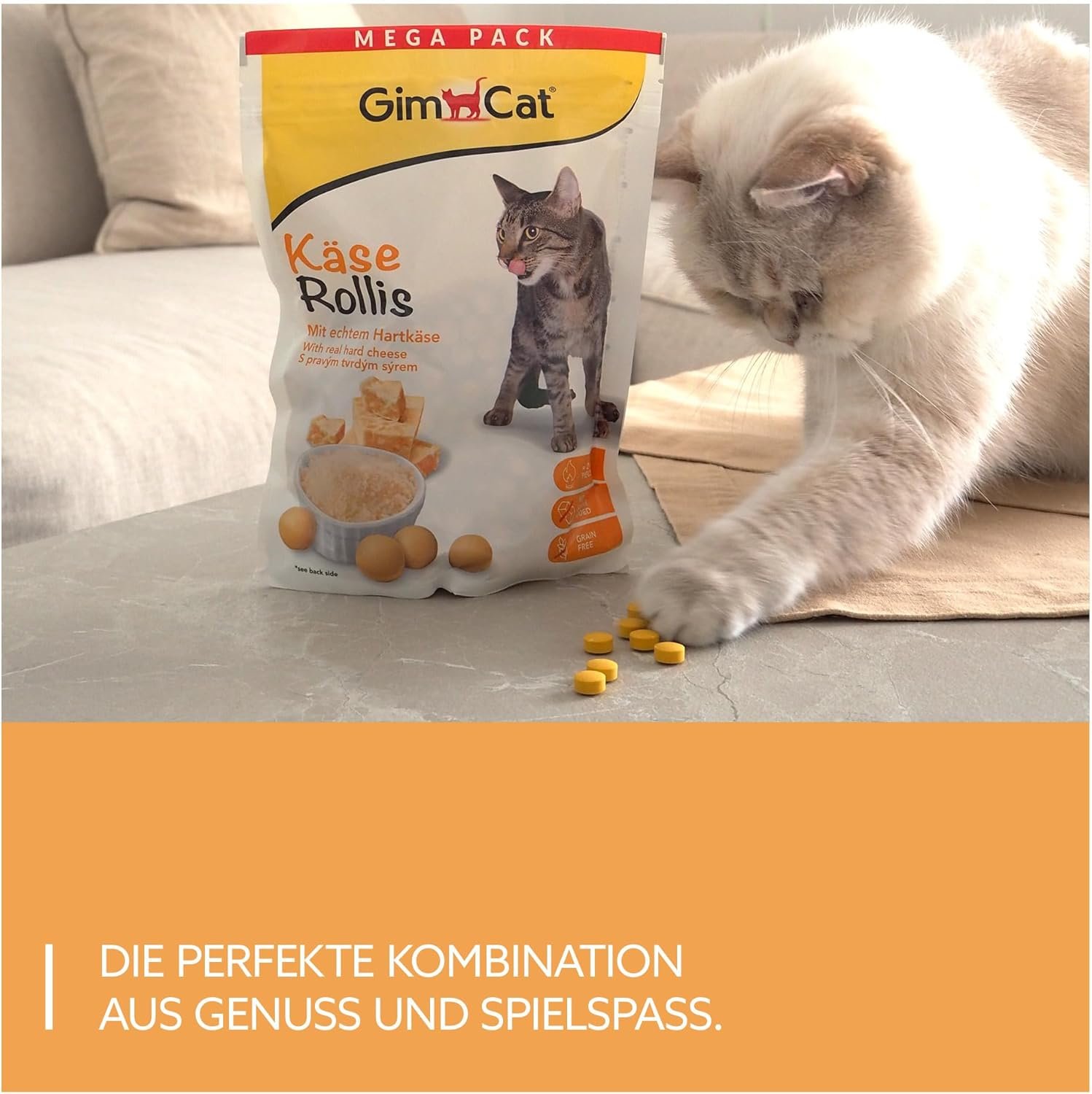 Lieferumfang: 1 Beutel à 425 g GimCat Käse-Rollis, Leckerbissen mit echtem Käse und Vitaminen für ein glückliches Katzenleben