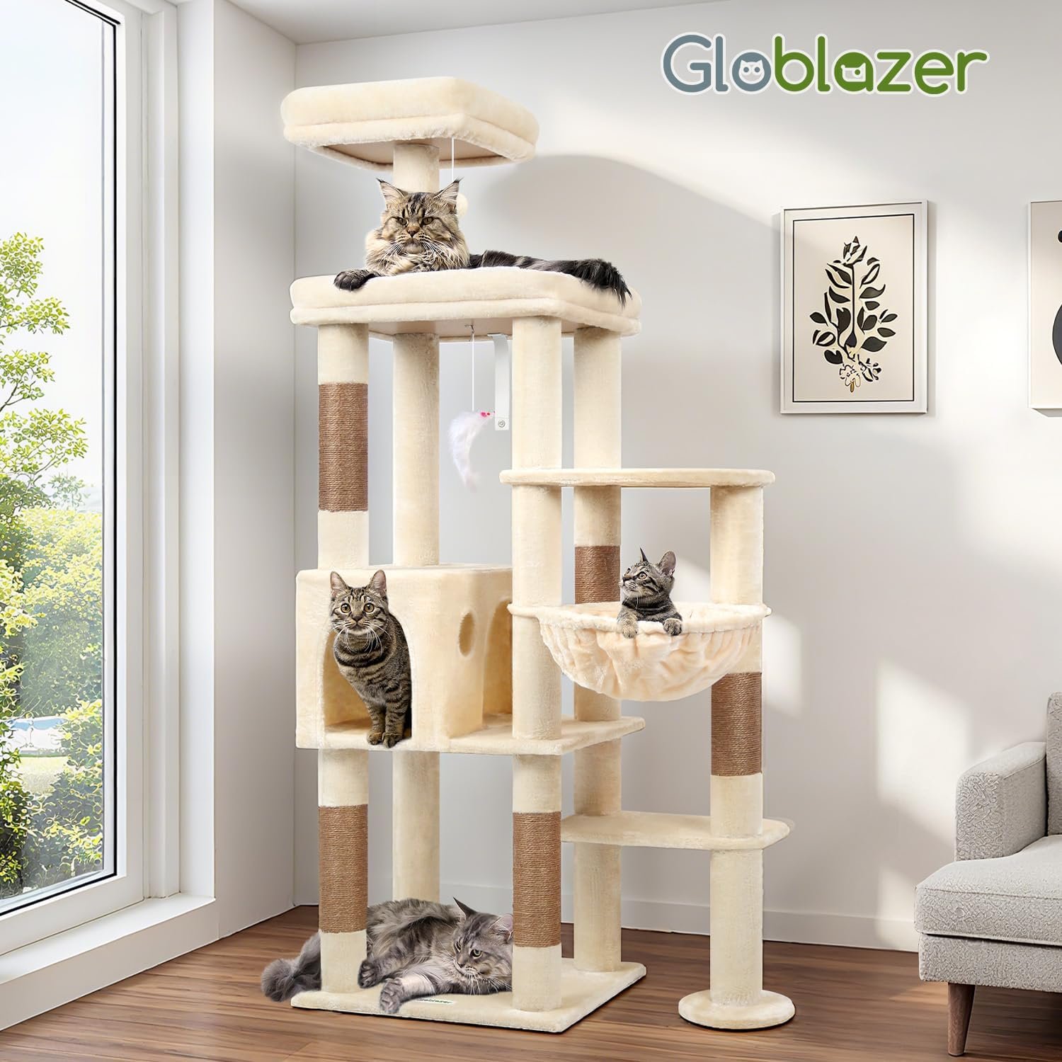 Kratzbaum zum Ausruhen, Spielen und Kratzen: Dieser Kratzbaum bietet mehrere große Liegeflächen, Plüschtiere und einen Kratzbaum aus Sisal – ideal für 3–4 große Katzen zum Ausruhen, Spielen und Kratzen.