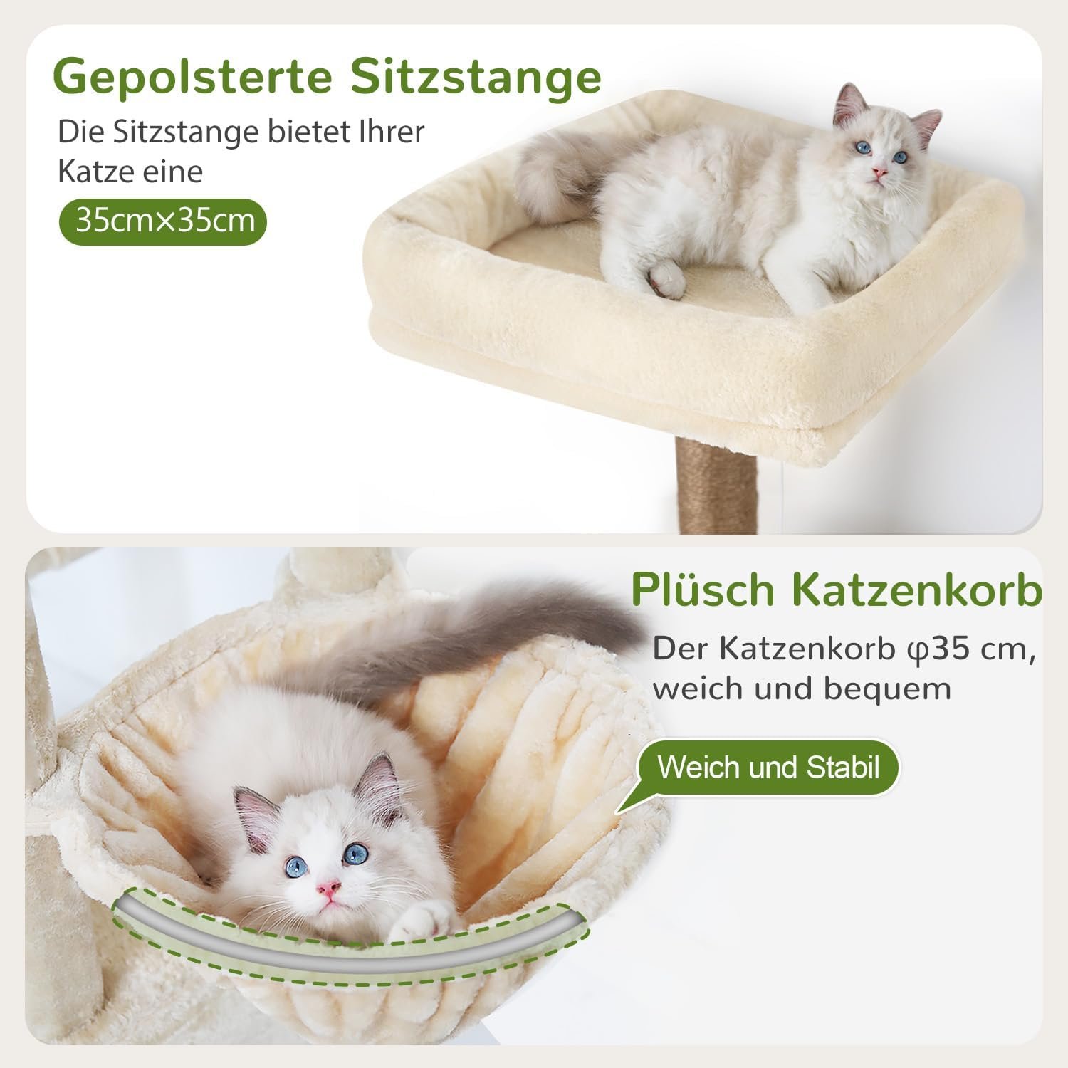Katzenhaus zum Ausruhen und Verstecken: Dieser Kratzbaum verfügt über ein großes Katzenhaus (42 x 30 x 27 cm), das den Innenraum um 26 % vergrößert. Diese Katzenhöhle ist ideal für Katzen zum Ausruhen, Verstecken und Beobachten.