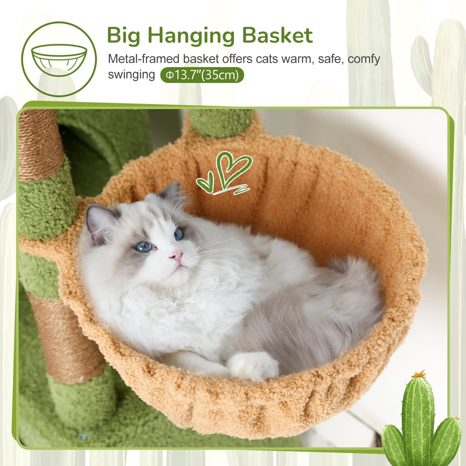 MULTIFUNKTIONALER KRATZBAUM Dieser Kratzbaum bietet zwei ruhige Katzenhäuser, eine große gepolsterte Plattform, eine Sitzstange und einen weichen, bequemen Hängekorb. Es vereint Ruhe, Spiel und Beobachtung in einem kleinen Rückzugsort exklusiv für Ihre Katze.