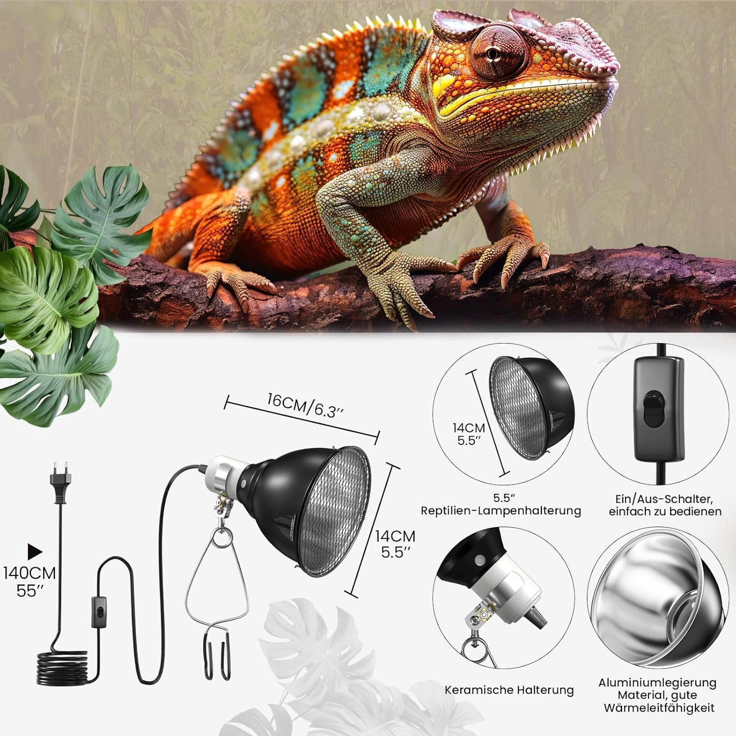 VIELSEITIGER EINSATZ Ideal für eine Vielzahl von Anwendungen, von der Bereitstellung essentieller Wärme und der Unterstützung der Kalziumaufnahme bei Reptilien bis hin zur Wärmezufuhr für Zimmerpflanzen und als Fülllicht für Fotografie und Kunstwerke.