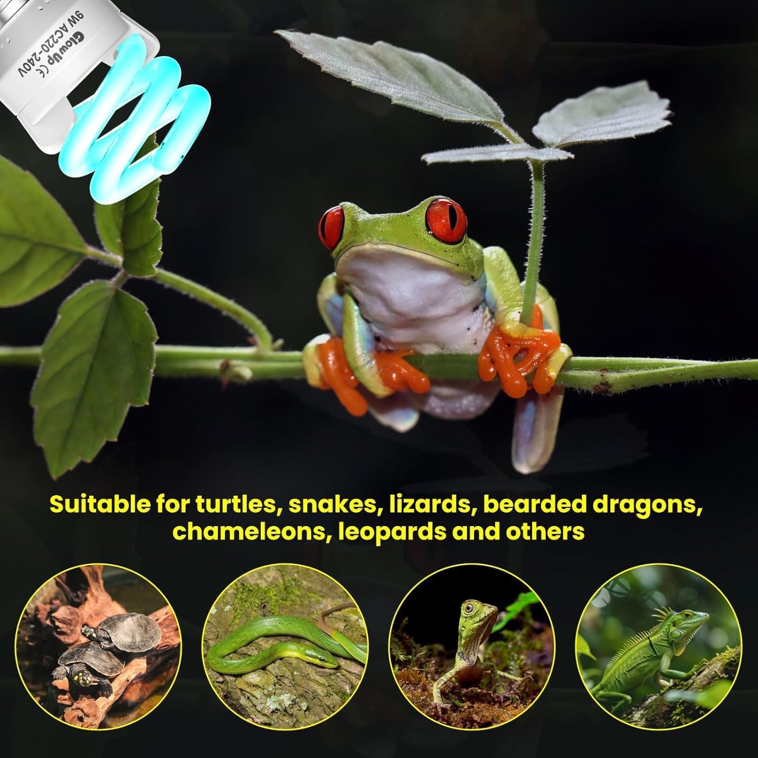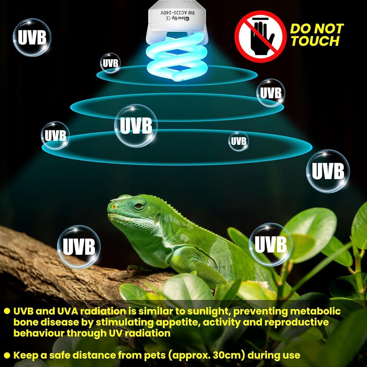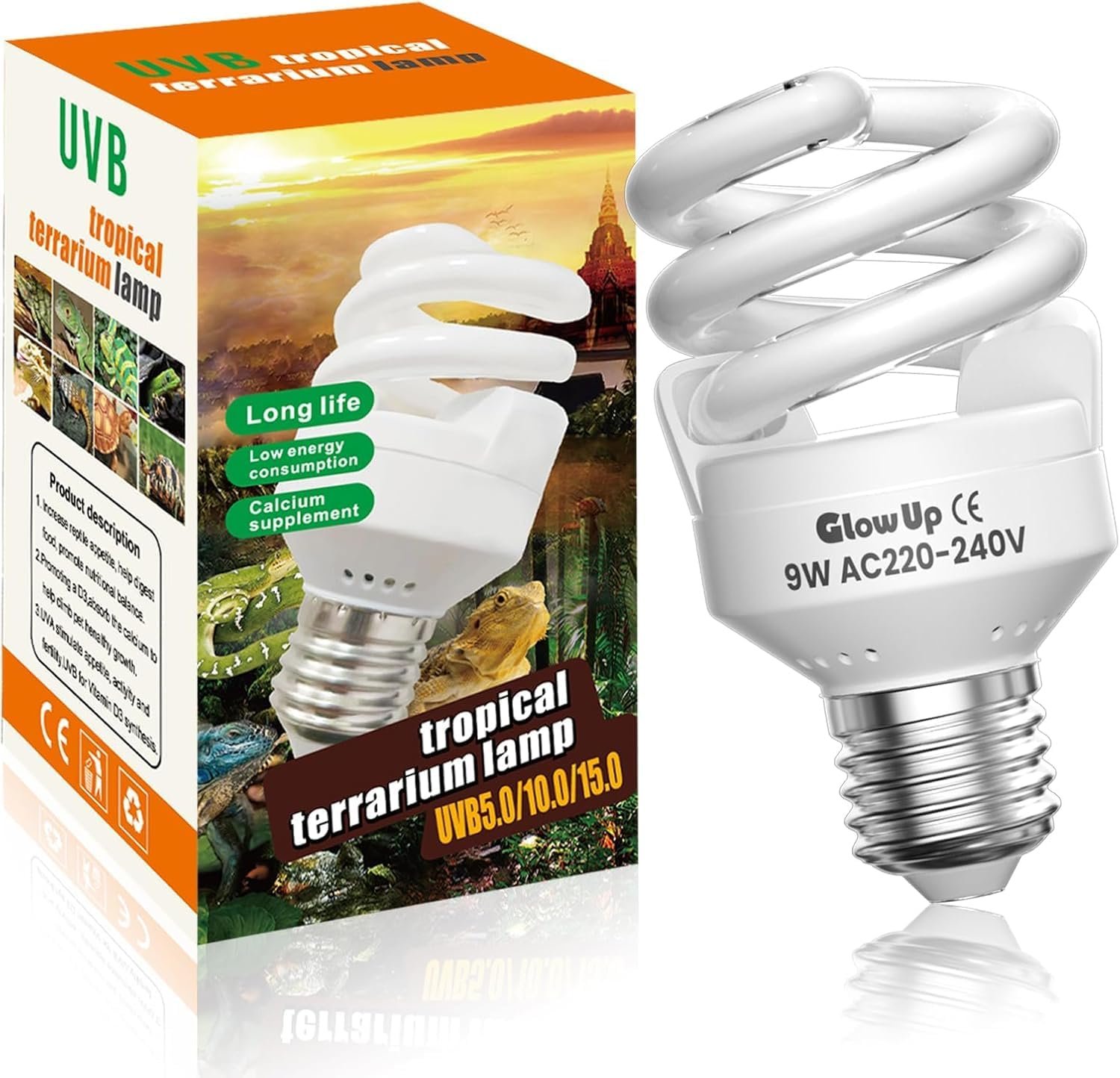 Reptilien-UVB-Lampe Terrarium: 9 W UVA-UVB-Glühbirne Schildpatt, AC 220–240 V, Standard-E27-Sockel, kein schädlicher UVC-Ausstoß. Großartig