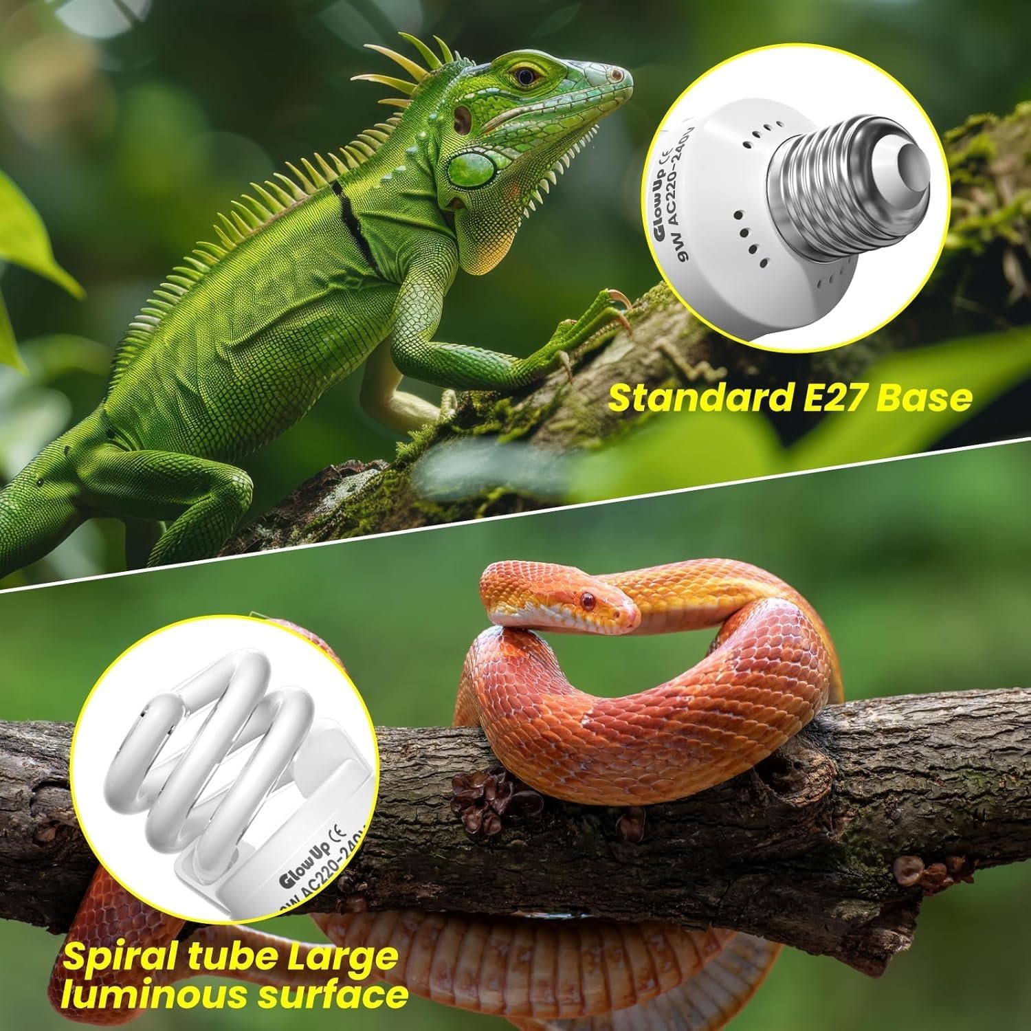 Anwendungen: Kann mit Aquarien, Glasbehältern, Futterspendern und anderem Zubehör verwendet werden; geeignet für Schildkröten, Schlangen, Eidechsen, Bartagamen, Chamäleons, Leoparden und andere; Auch für Zimmerpflanzen geeignet, strahlt UV-Licht aus, um die Photosynthese der Pflanzen zu unterstützen