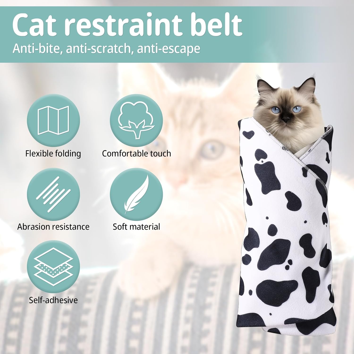 Selbstklebend: Unsere Katzenpflegepackung verfügt über ein selbstklebendes Design mit starker Viskosität, das Ihre Katze fest umschließen kann und nicht leicht verrutscht oder sich löst.