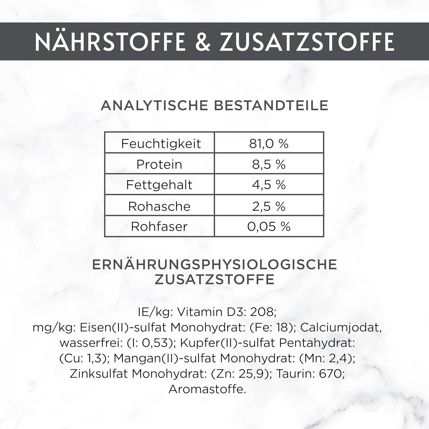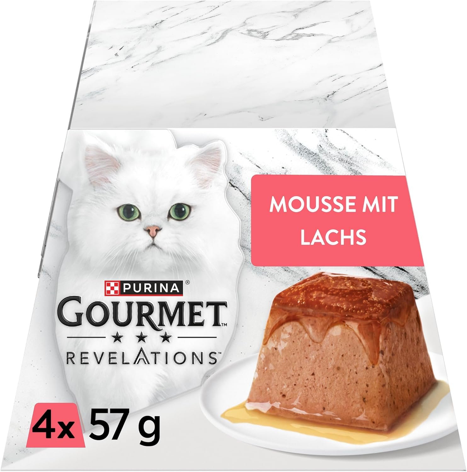 Das Gourmet Revelations Fine Mousse Nassfutter bietet Ihrem anspruchsvollen Gourmet einzigartige Genussmomente. Jedes Menü von Gourmet Revelations Katzenfutter wird liebevoll und fachmännisch aus sorgfältig ausgewählten, hochwertigen Zutaten zubereitet. Purina Gourmet Revelations Fine Mousse: • Alleinfuttermittel für ausgewachsene Katzen. • Mit Lachs für einen unwiderstehlichen Geschmack. • Zarte und feine Mousse, überzogen mit einer köstlichen Sauce. • Hergestellt aus hochwertigen Zutaten. • Ohne Zusatz künstlicher Farb-, Geschmacks- und Konservierungsstoffe. • Praktische 4er-Packung (4x57g) für exquisite Verwöhnung. Gourmet Revelations Fine Mousse ist eine erlesene Auswahl exzellenter Köstlichkeiten, perfekt geformt, um Ihrer Samtpfote einen exquisiten Genussmoment zu bescheren. Jedes zarte und feine Mousse, zubereitet mit erlesenem Lachs, wird aus hochwertigen Zutaten hergestellt und mit einer köstlichen Sauce überzogen. Selbstverständlich verzichten wir auf den Zusatz künstlicher Farb-, Geschmacks- und Konservierungsstoffe, damit Ihre Katze nur das Beste bekommt. Dies bietet Ihrer Katze ein exquisites kulinarisches Genusserlebnis, das sie lieben wird. Gourmet Revelations: eine exquisite Delikatesse, exquisit serviert, abgerundet durch das Fachwissen und die Leidenschaft von Gourmet, Ihren Feinschmecker jeden Tag aufs Neue zu verwöhnen. Purina Gourmet Katzenfutter steht für eine unvergleichliche Vielfalt und Auswahl erlesener Genusskreationen. Innovative Rezepte aus besten Zutaten erfüllen die kulinarischen Wünsche aller Samtpfoten – jeden Tag aufs Neue.