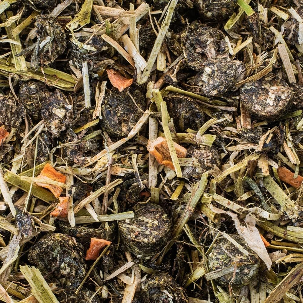Zutaten: 84,0 % Wiesenfasern / 4,0 % Luzerne (heißluftbehandelt) / 3,0 % Stroh / 3,0 % Leinöl (nativ) / 2,0 % Leinkuchen / 1,0 % Karottenchips / 0,5 % Apfelchips / 0,5 % Rote-Bete-Chips. 0,5 % Topinambur (fermentiert)/0,2 % Kräutermischung (Majoran, Rosmarin, Estragonstängel, Ringelblume, Petersilienstängel, Löwenzahn, Sonnenhut, Brennnessel, Salbei, Fenchelsamen, Korianderstängel) / 0,2 % Calciumcarbonat / 0,1 % Bierhefe / 0,04 % % CellProteProtect. Der Unterschied zu 100 % ist der Anteil der Vormischungen in der Formel. Großpferd: 1 bis 3 kg/Tag, je nach Bedarf und Leistungsanforderung. Wir empfehlen das Einweichen des Futters, wenn Ihr Pferd sehr hastig frisst, eine schlechte Zahnkonstitution hat oder altersbedingte Probleme beim Kauen hat.