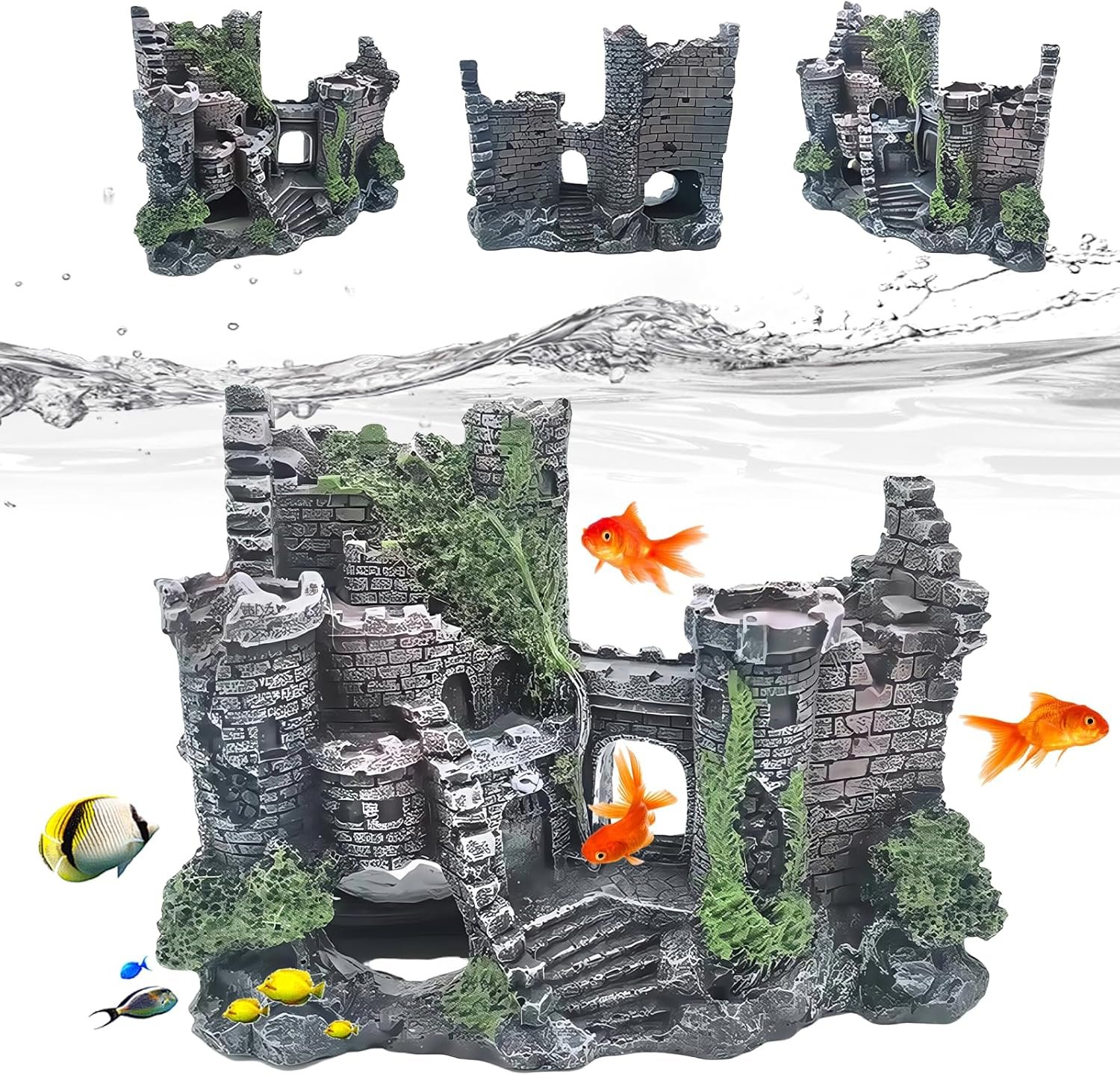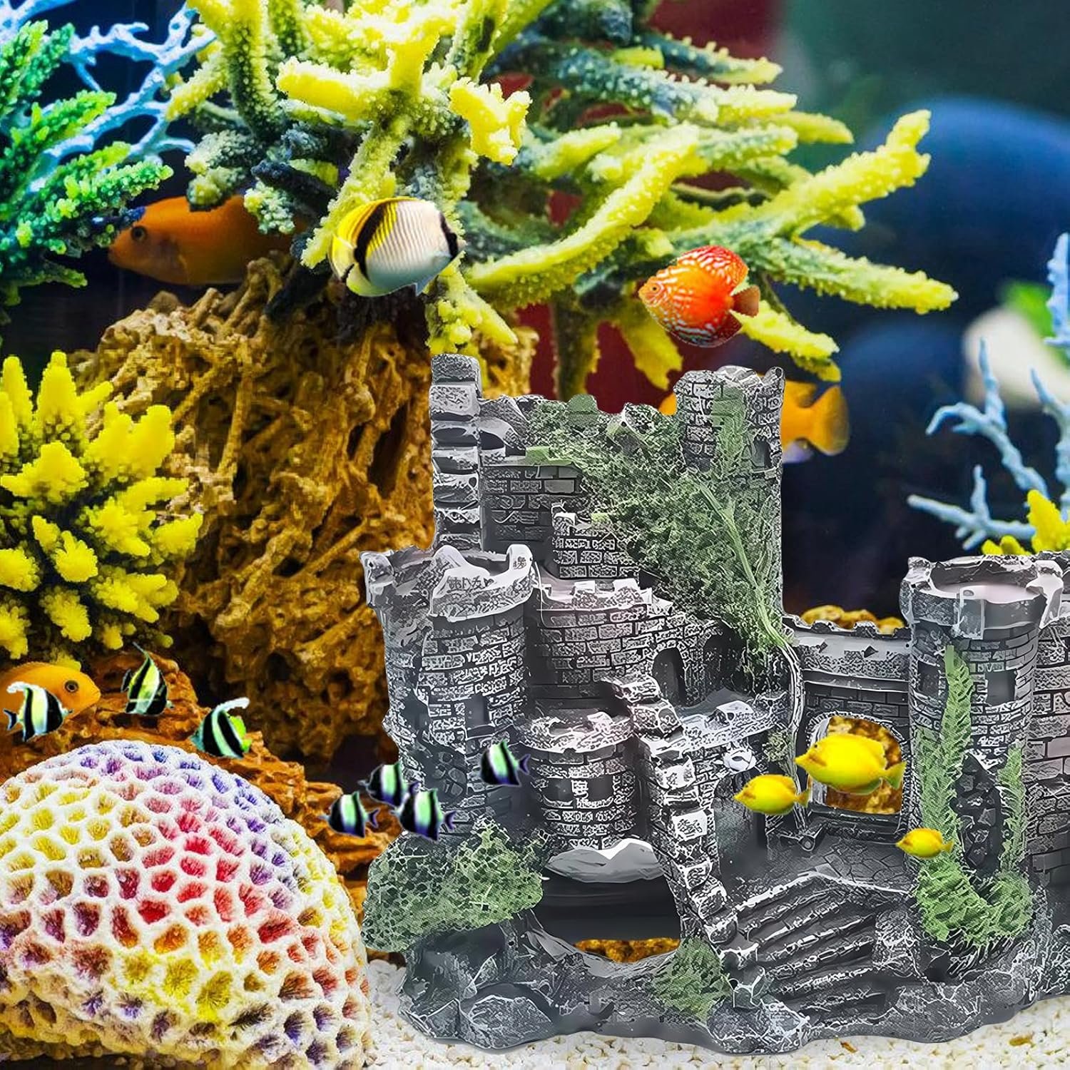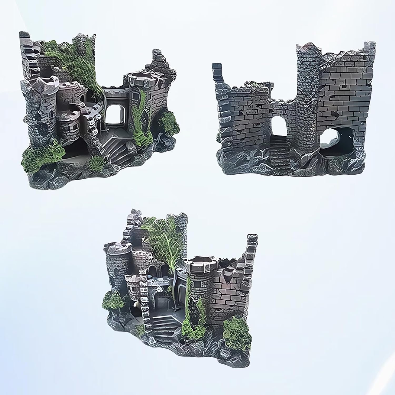 Simulation der alten Burg: Durch die detaillierte Gestaltung im Stil einer verwitterten Burgruine entsteht eine geheimnisvolle Unterwasserlandschaft. Es bietet Versteckmöglichkeiten für Tiere und lässt das Aquarium wie eine märchenhafte Miniaturwelt wirken.