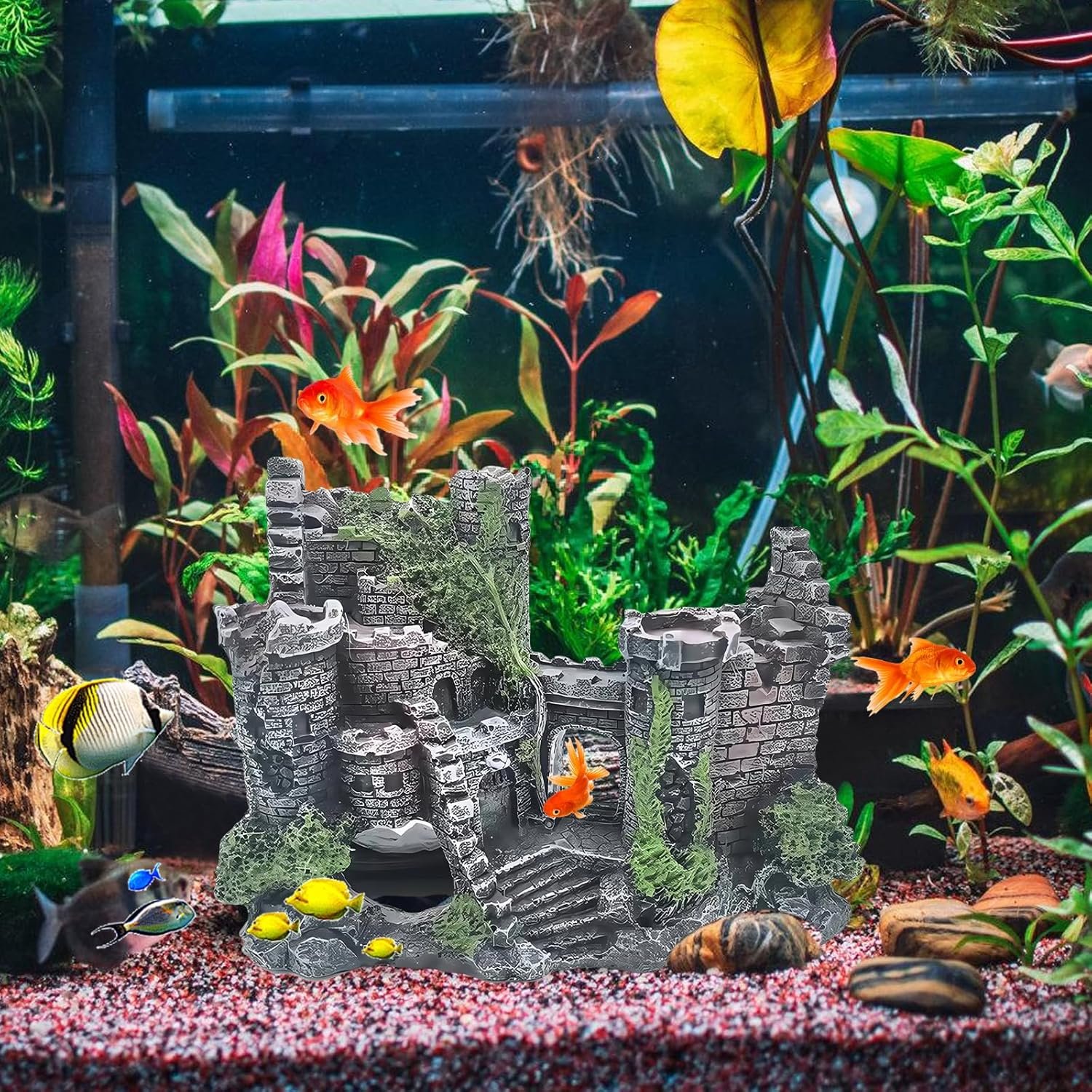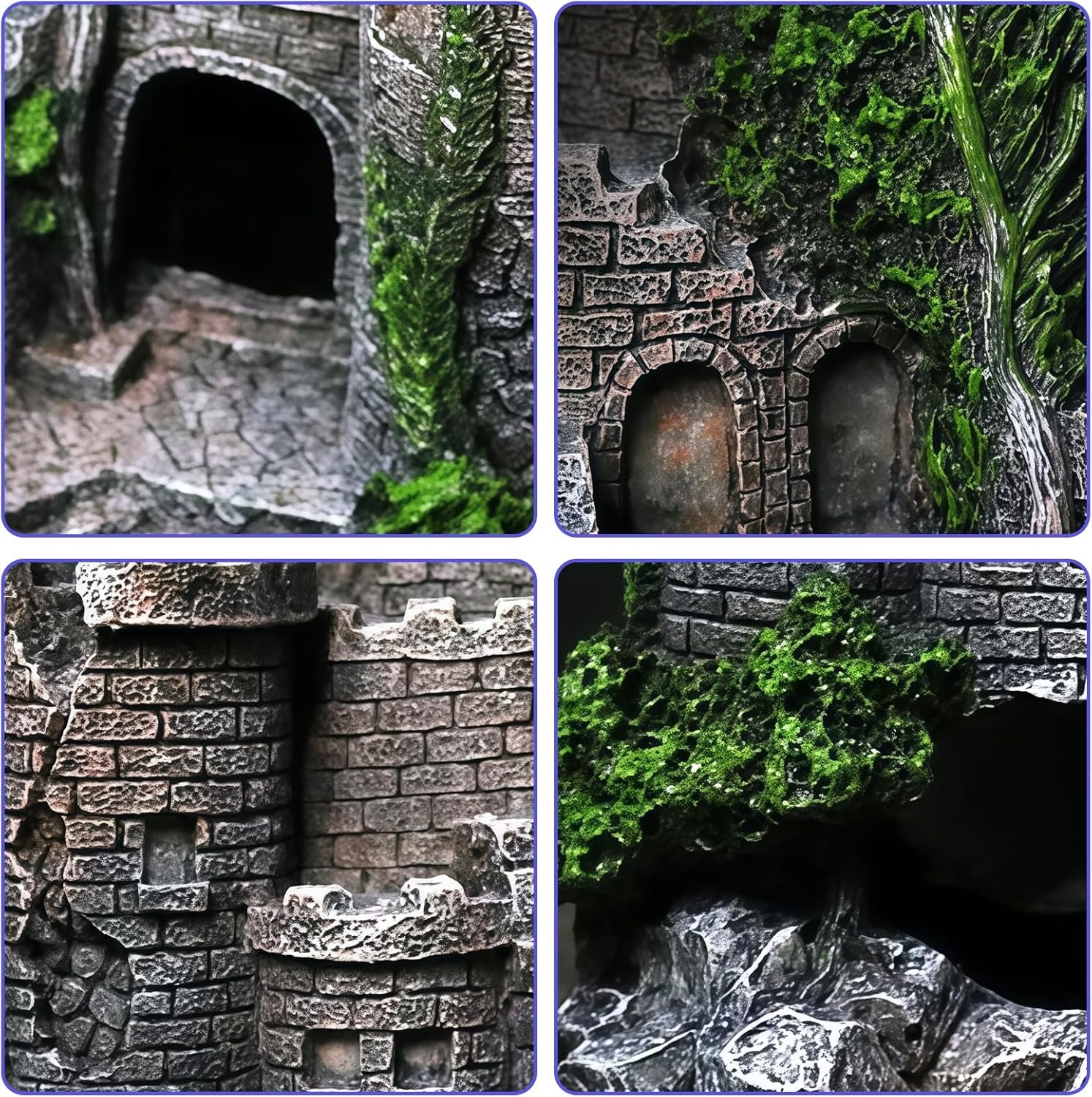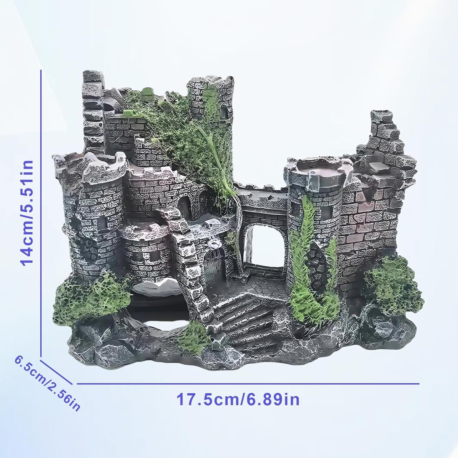 Simulation der alten Burg: Durch die detaillierte Gestaltung im Stil einer verwitterten Burgruine entsteht eine geheimnisvolle Unterwasserlandschaft. Es bietet Versteckmöglichkeiten für Tiere und lässt das Aquarium wie eine märchenhafte Miniaturwelt wirken.
