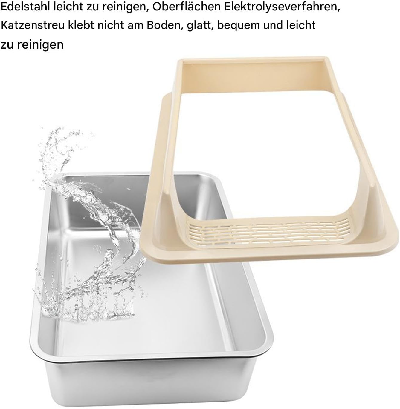 Dieses Haustierzubehör aus Edelstahl verfügt über ein großes, hochwandiges Design, das Verschmutzungen eindämmt und die Geruchsneutralisierung verbessert. Ausgestattet mit einer Schaufel ermöglicht er eine mühelose Pflege im Innen- und Außenbereich, beispielsweise auf der Terrasse, dem Balkon oder im Garten. Ideal für Häuser, Wohnungen, Geschäfte und Bauernhöfe, hält es Bereiche sauber und versorgt gleichzeitig Kätzchen und Katzen effektiv.