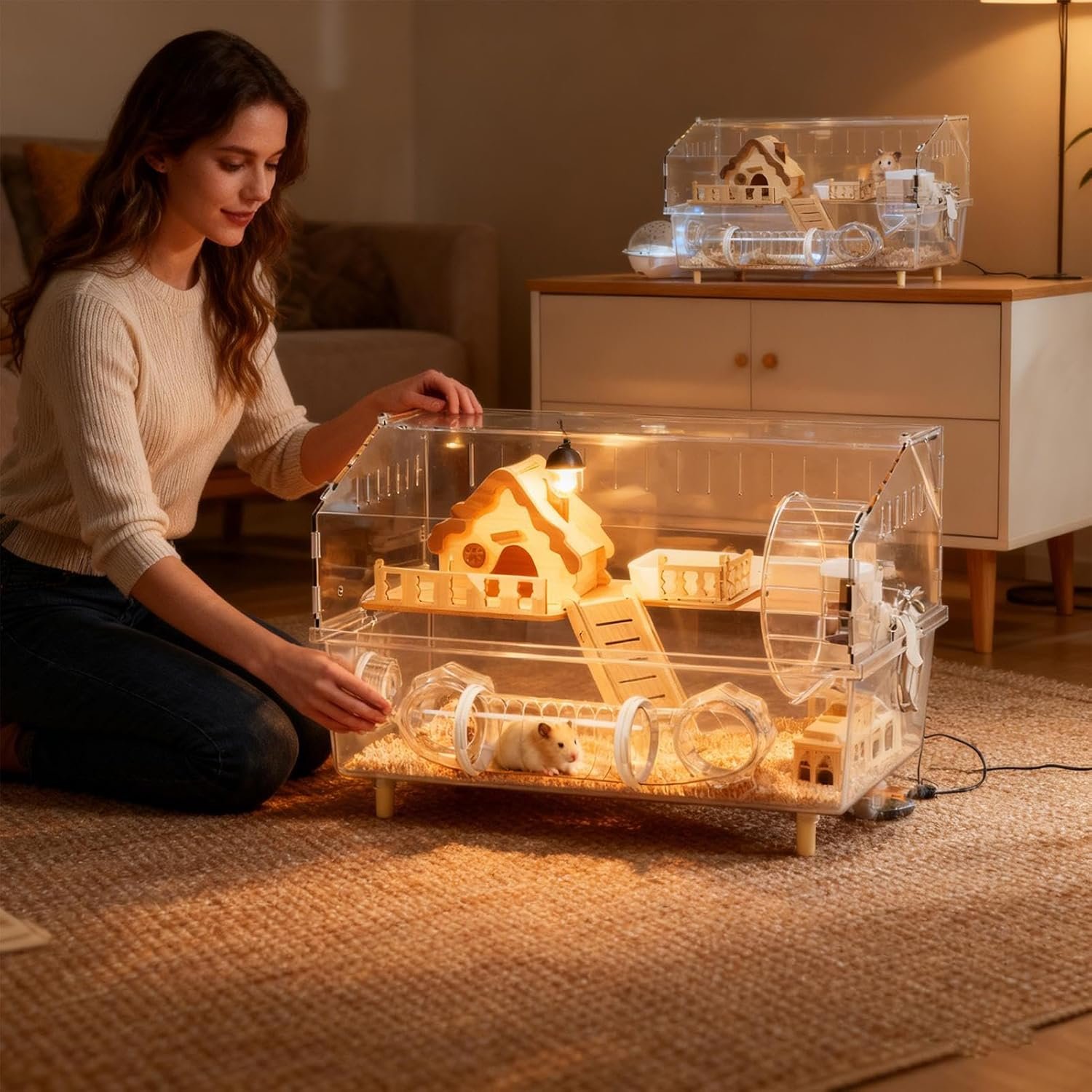 Unangepasste Perspektiven: Dank 360-Grad-Einblicken dank bruchsicherer Acrylscheiben können Sie das Wohlbefinden Ihres Haustieres ganz einfach kontrollieren – egal ob beim Spieltraining, beim Käfigputzen oder bei nächtlichen Aktivitäten