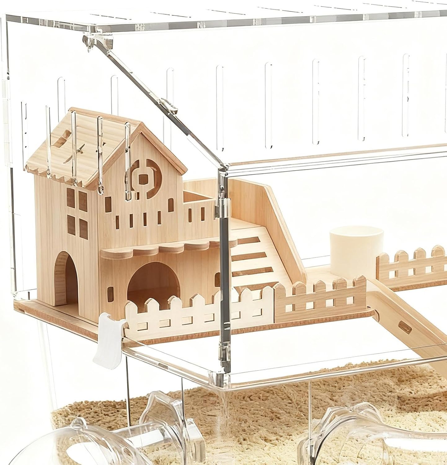 Reichlich vertikaler Raum Der Hamsterkäfig ist mit reichlich vertikalem Raum und einer geräumigen doppelstöckigen Struktur ausgestattet, die ein flüssiges Klettern und Benutzen ermöglicht. Dies verringert die Enge und fördert natürliche Verhaltensweisen, wodurch ein anregender Lebensraum für das Gedeihen von Hamstern entsteht. Die große vertikale Dimension unterstützt dynamische Bewegungen und hilft Haustieren, sich frei zu entwickeln und ihre Instinkte in einer komfortablen Umgebung auszuleben.