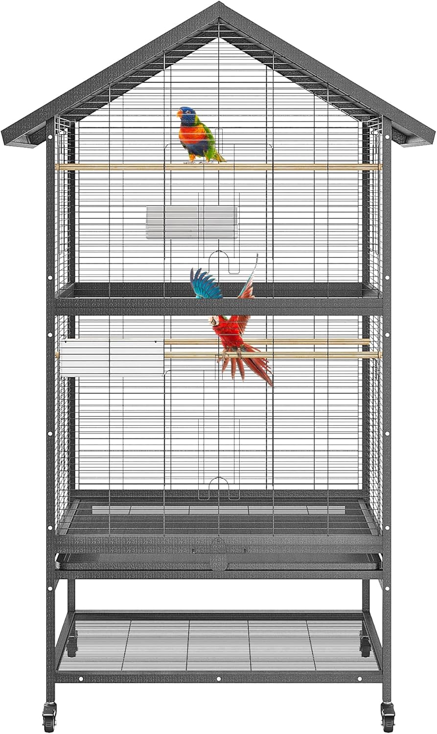 Dieser formschöne Vogelkäfig mit schrägem Dach ist das ideale Zuhause für alle Vögel, die gerne klettern und spielen. Der geräumige Käfig bietet den Vögeln ein angenehmes Wohnumfeld.