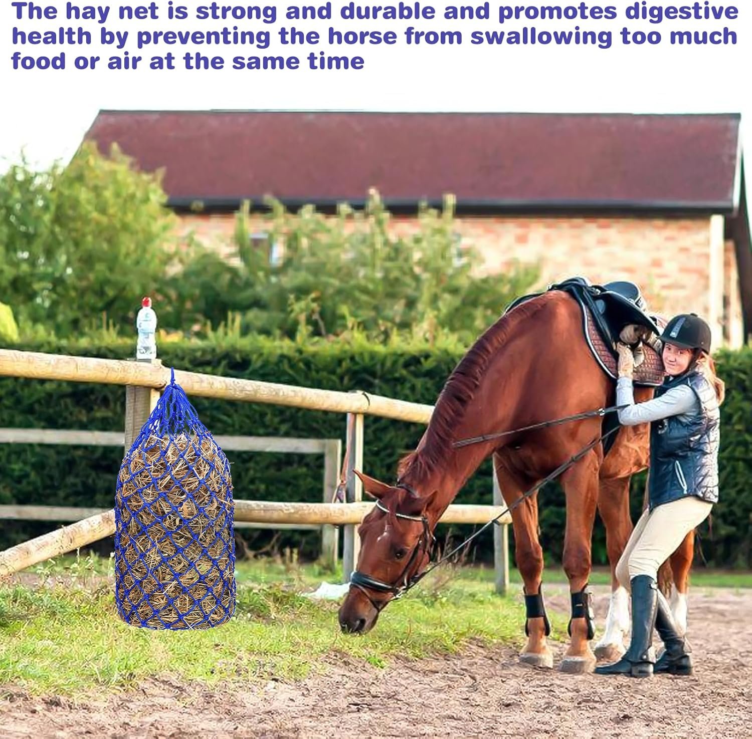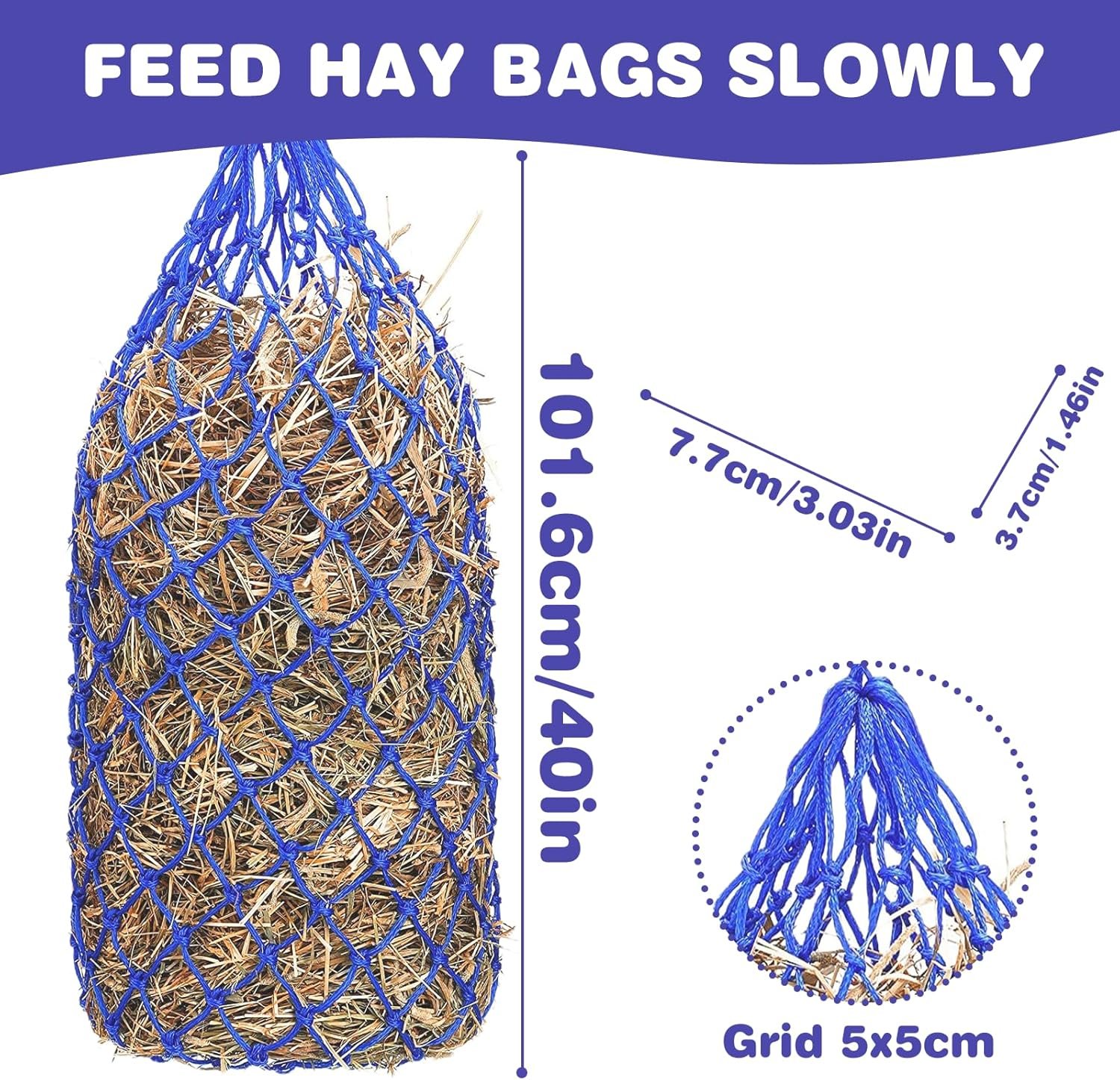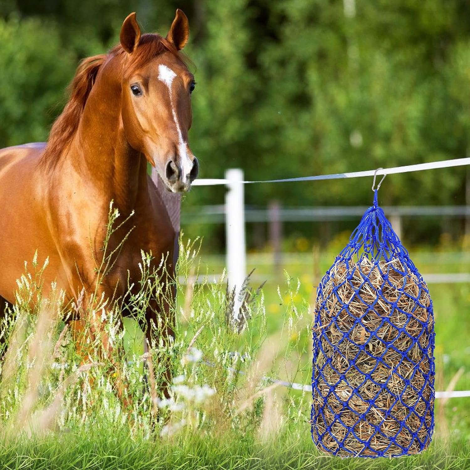 Stilvolles Design: Das große Heunetz für Pferde ist in einem schönen Blauton gehalten, der nicht nur funktional, sondern auch ästhetisch ansprechend ist. Es verleiht Ihrem Pferdestall einen Hauch von Farbe und Stil und sorgt gleichzeitig dafür, dass Ihr Pferd immer gut versorgt ist.