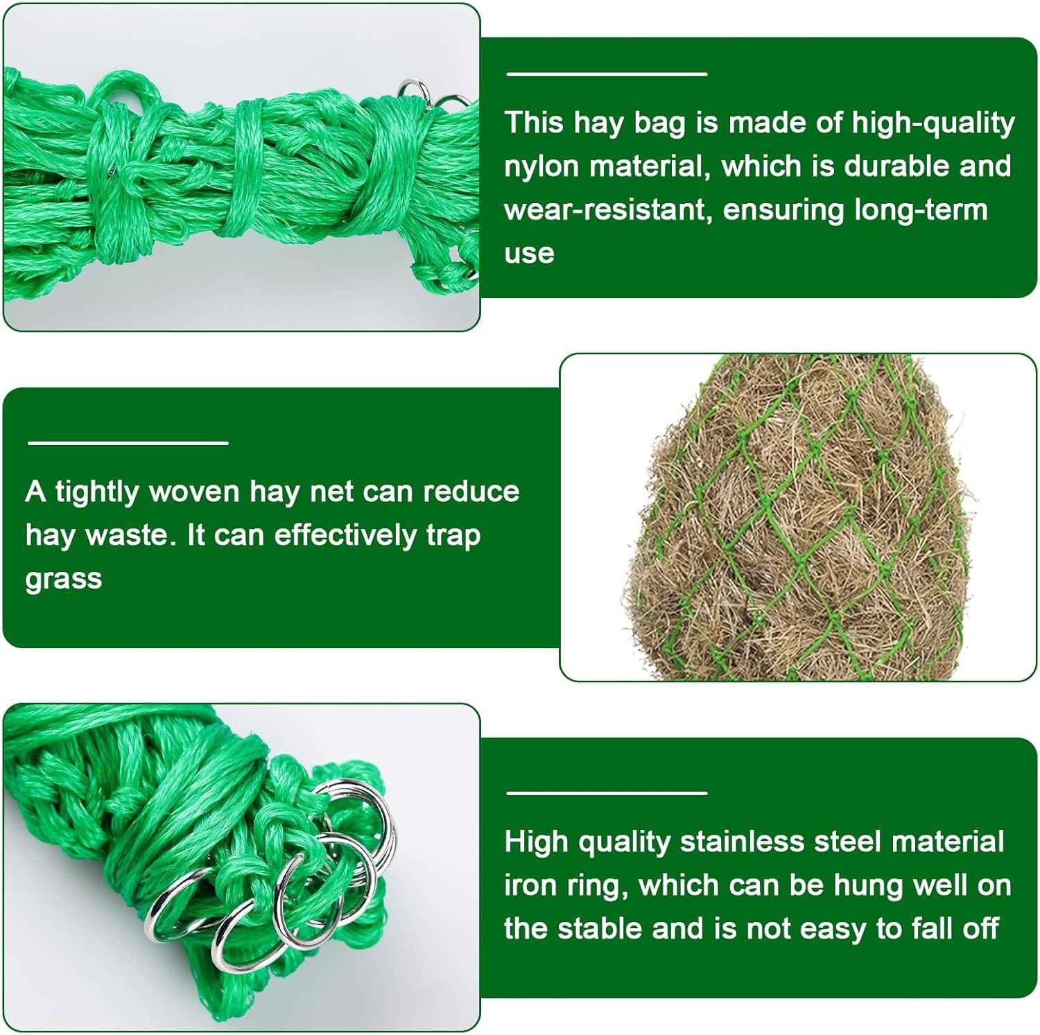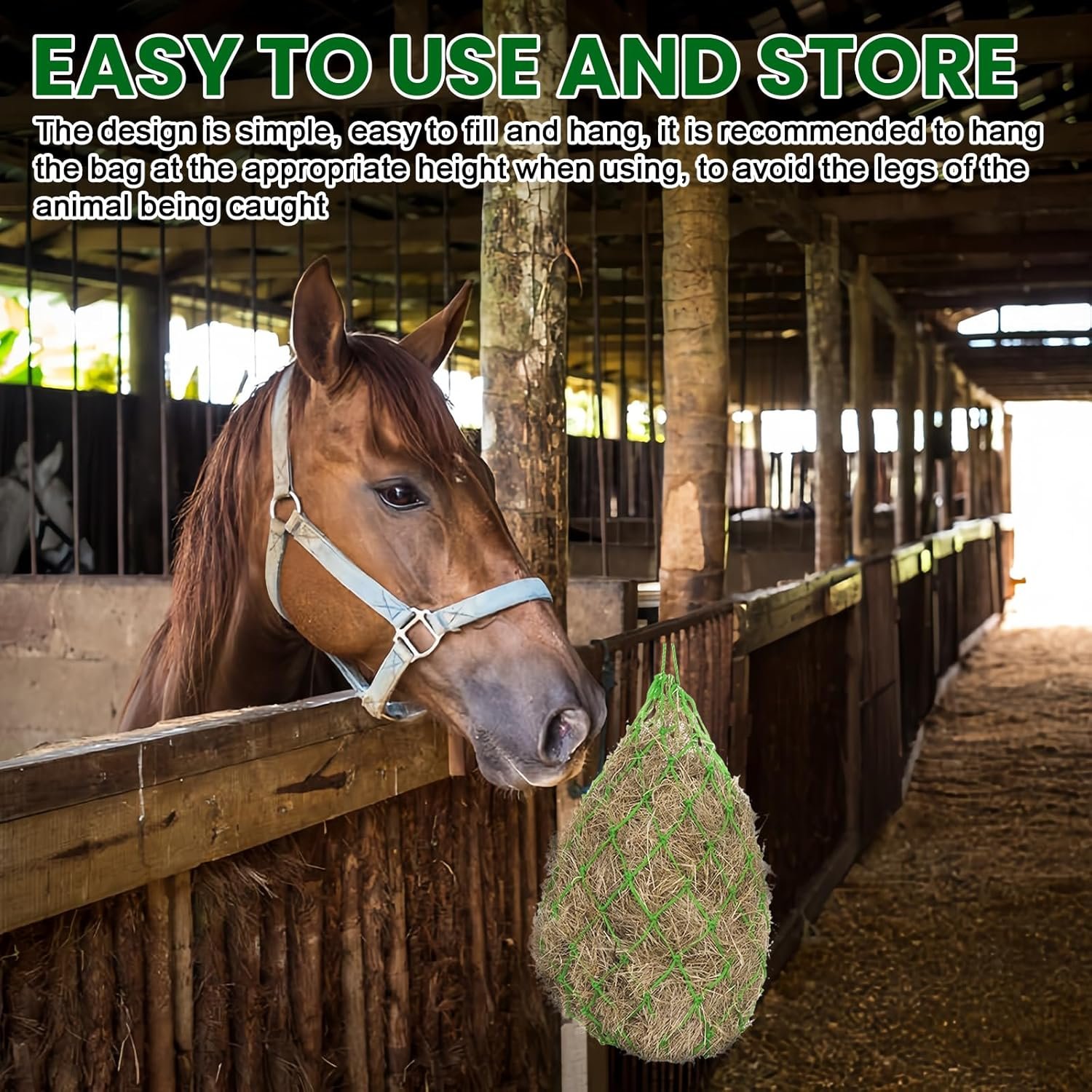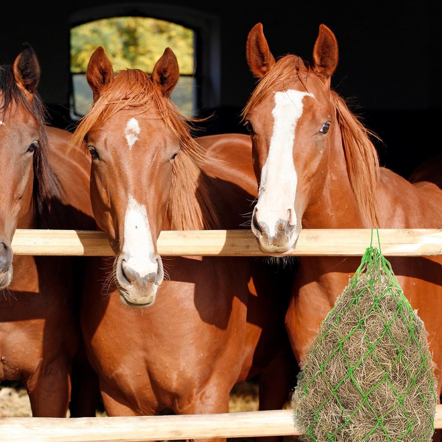 Stilvolles Design: Das große Heunetz für Pferde ist in einem schönen Grün gehalten, das nicht nur funktional, sondern auch ästhetisch ansprechend ist. Es verleiht Ihrem Pferdestall einen Hauch von Farbe und Stil und sorgt gleichzeitig dafür, dass Ihr Pferd immer gut versorgt ist.