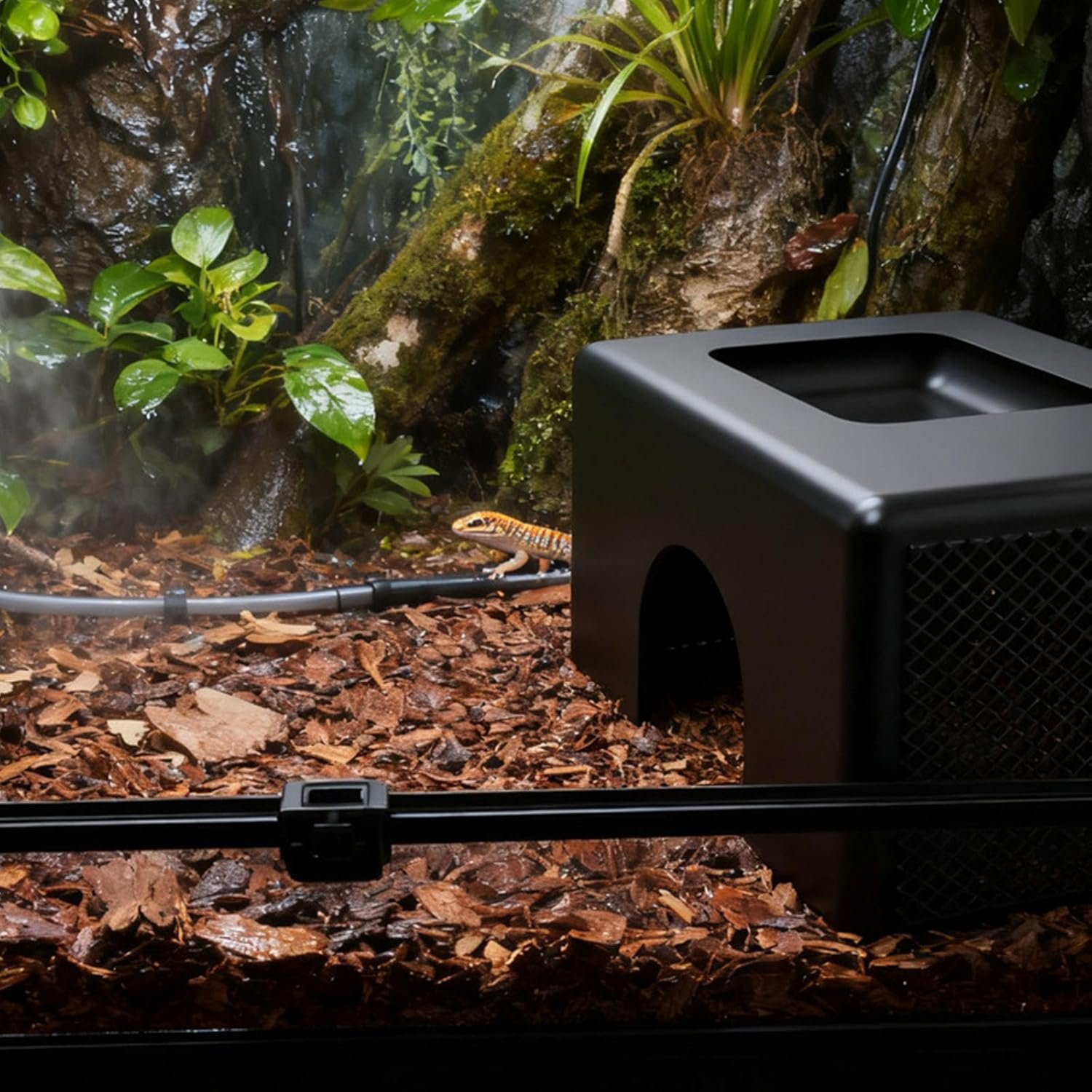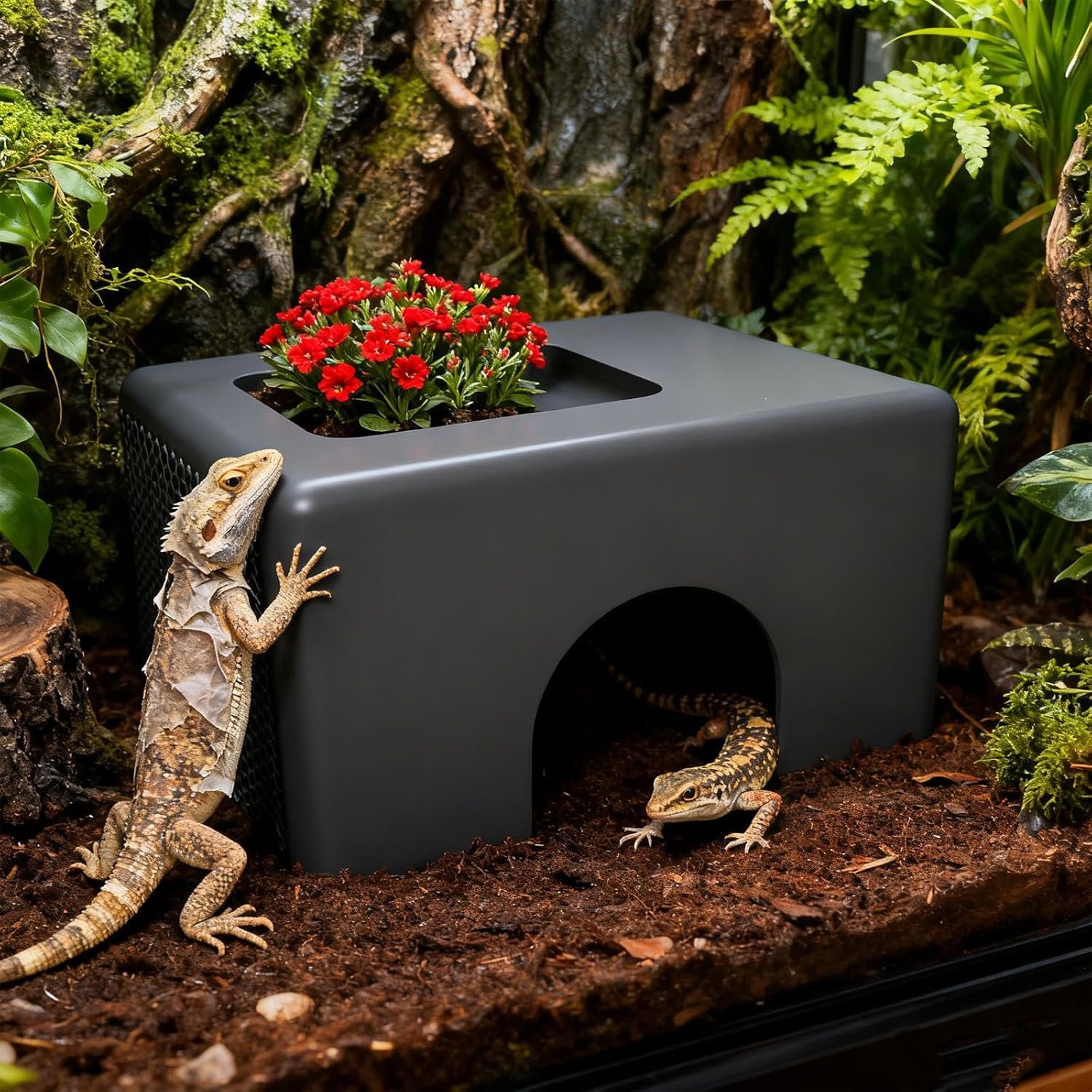 Einfache Installation und Feuchtigkeitskontrolle: Die permanente Kunstschale kann umgekehrt installiert werden, um eine flache Oberfläche zu erhalten, was eine einfache Wasserzugabe ermöglicht, um optimale Feuchtigkeitsniveaus Terrarium aufrechtzuerhalten
