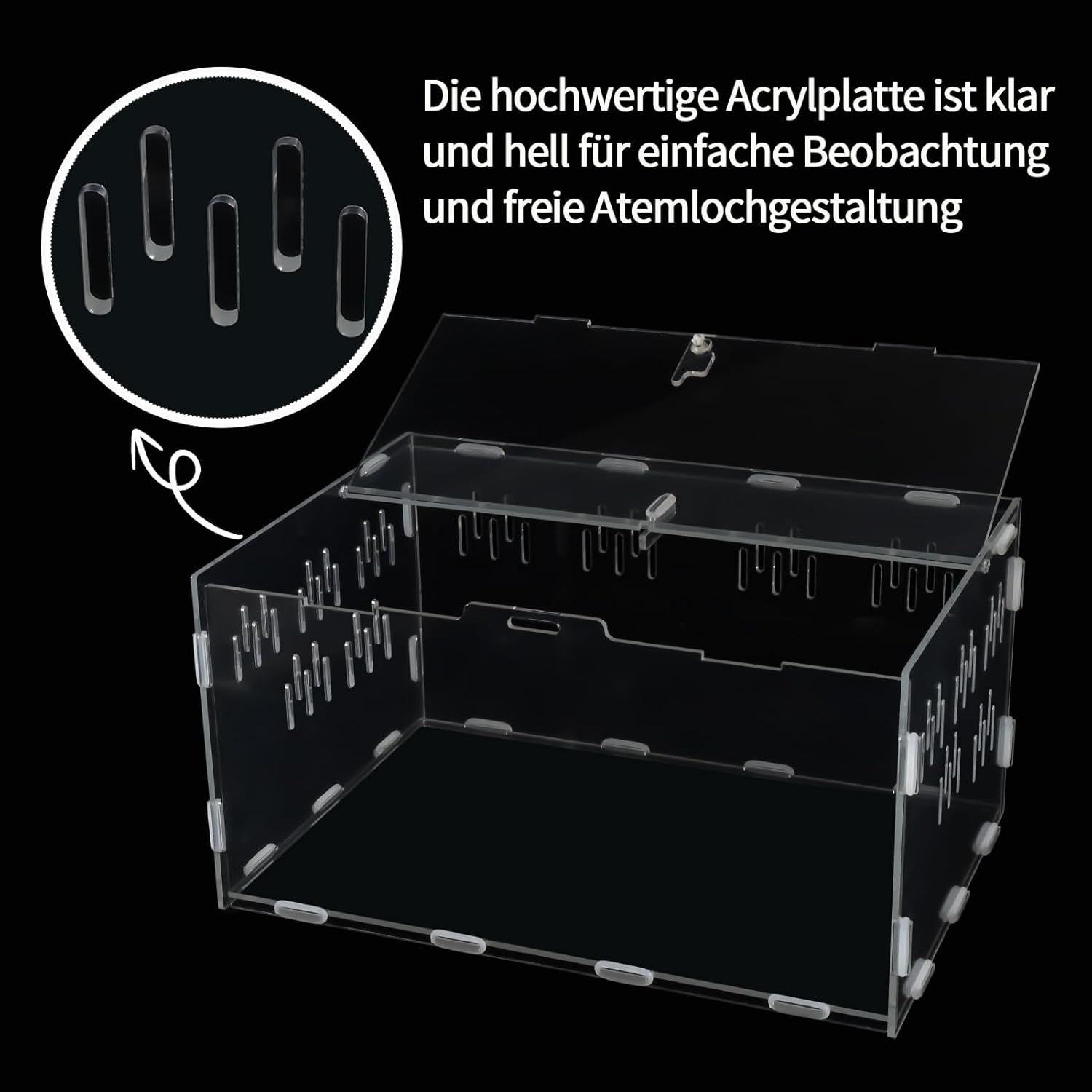 Material: Das Reptilien-Terrarium und die Insekten-Terrarium-Box bestehen aus Acryl, das nicht leicht zerbricht, langlebig, sehr transparent und klar für die Sicherheit Ihrer Haustiere ist