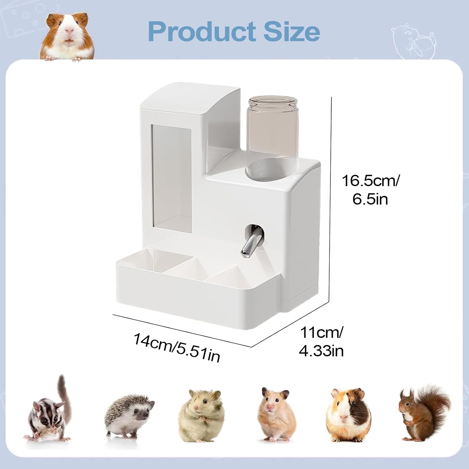 Die Hamster Trinkflasche verfügt über ein auslaufsicheres und kippsicheres Design, das während des täglichen Gebrauchs keine Lecks aufweist. Diese abnehmbare Wasserflasche eignet sich ideal für Meerschweinchen, Kaninchen, Ratten, Igel und Eichhörnchen und bietet Vielseitigkeit für den Einsatz im Innen- oder Außenbereich. Sie können im Schlafzimmer oder Wohnzimmer platziert werden, um Flüssigkeitszufuhr zu gewährleisten und interaktives Verhalten zu fördern. Das leicht zu reinigende Merkmal erhöht die Benutzerfreundlichkeit und spricht Tierbesitzer an, die zuverlässige Lösungen für ihre pelzigen Begleiter suchen.