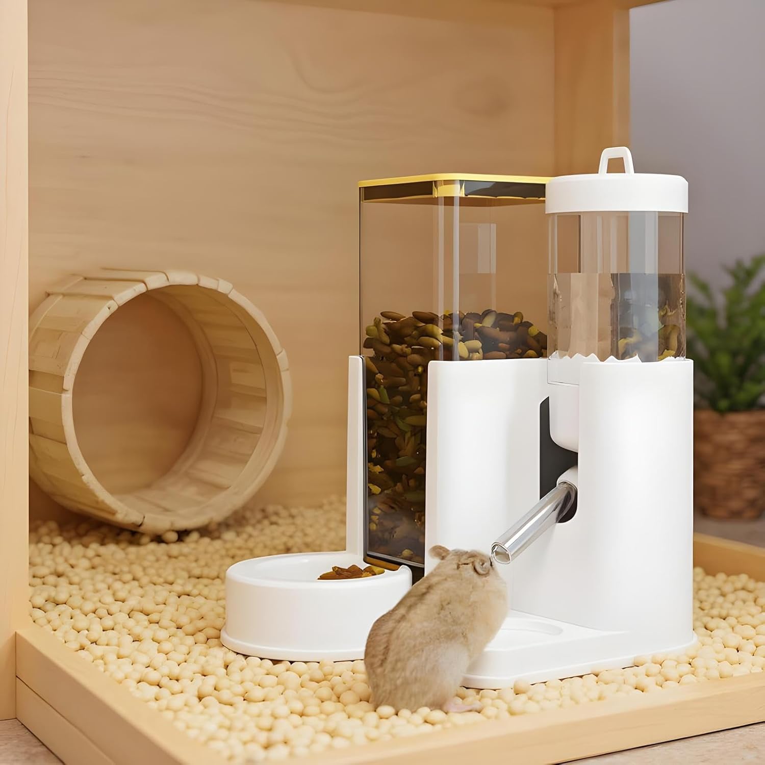 Reduzierter Stauraum: Integrierte 2-in-1-Lösung für Hamster als Wasser- und Futtersystem minimiert den Platzverbrauch im Gehege, ermöglicht eine übersichtliche Tierhaltung dank schlankem Design